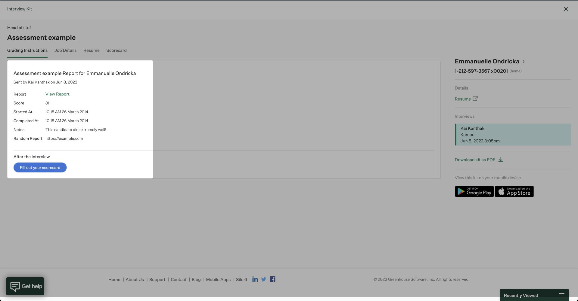If you are not using Greenhouse's built-in assessment workflow, the results will look like this: