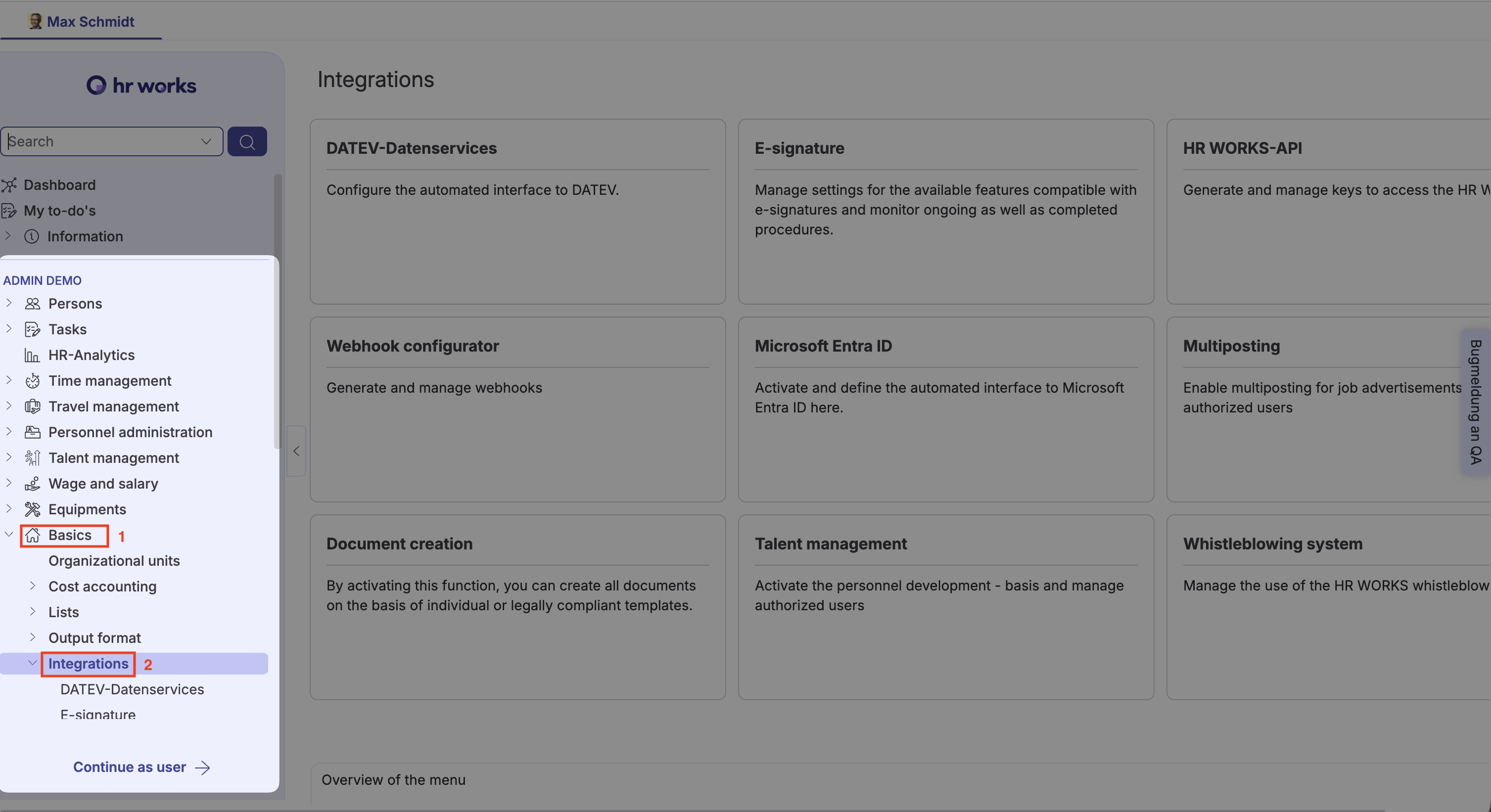 - Log into your HRworks instance (or that of the admin account that was shared with you)