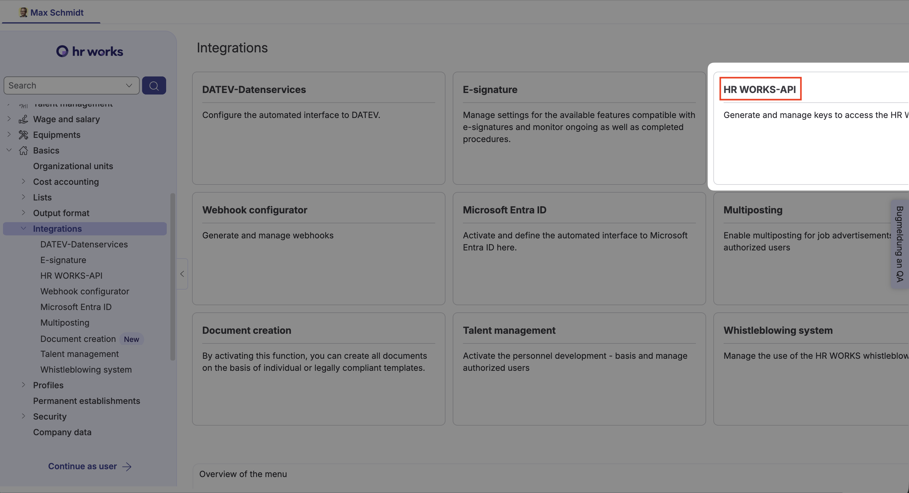 Click on the tile "HR WORKS-API"