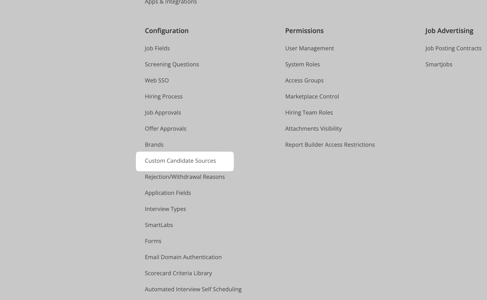 - Under Configuration, click on Custom Candidate Sources