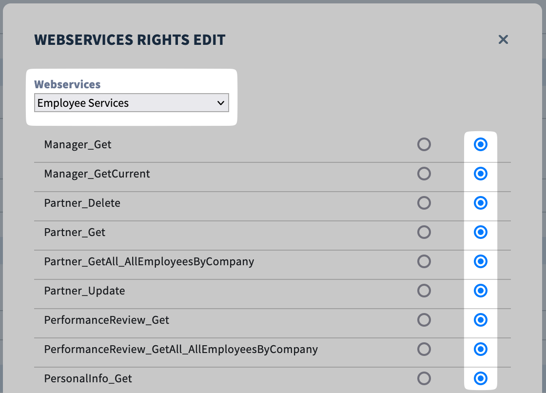 - Select the relevant service, for example, "Employee Services", from the dropdown:
