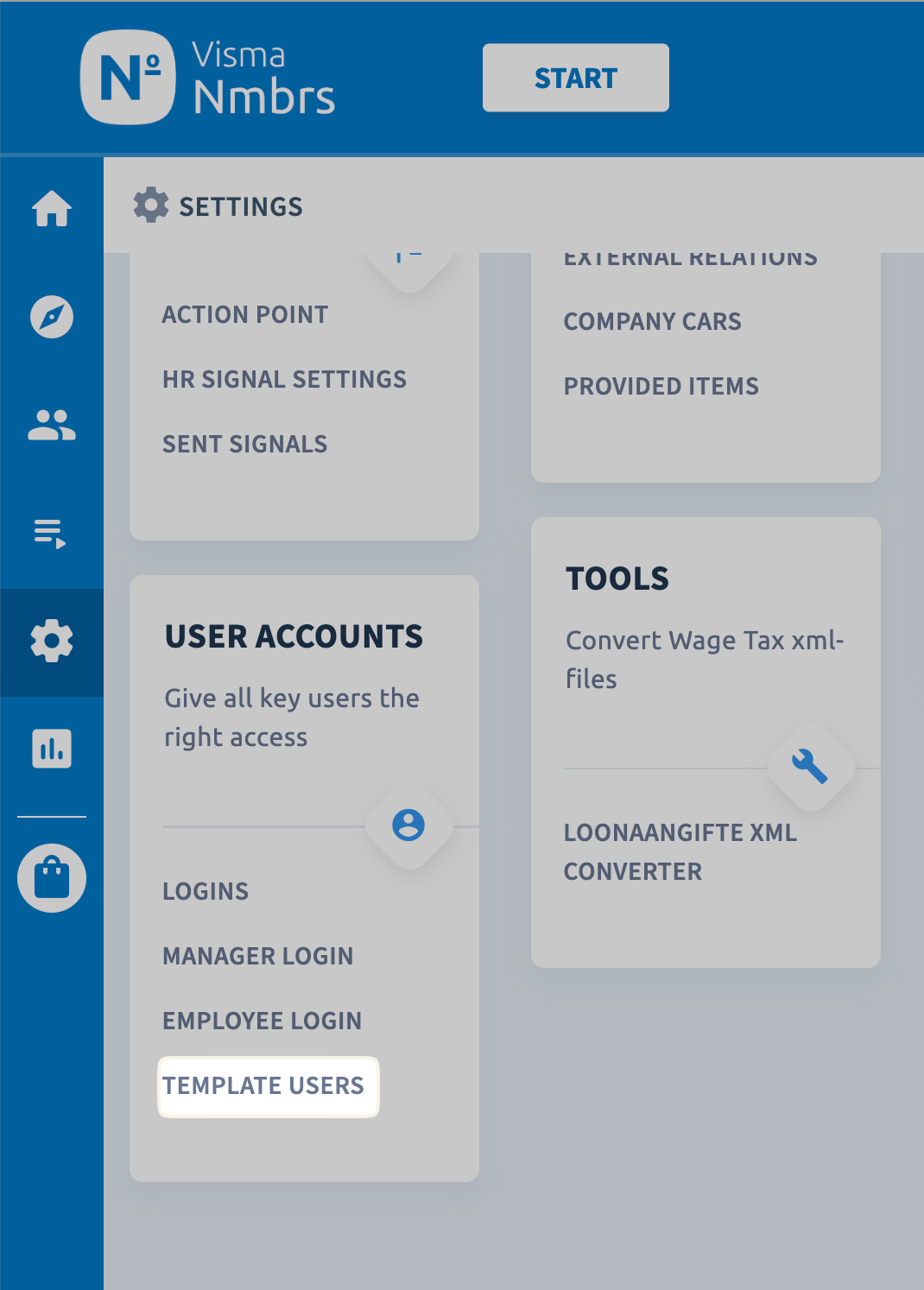- Click on the settings cog in the left sidebar, then "TEMPLATE USERS" (it may also be called "USER TEMPLATES"):