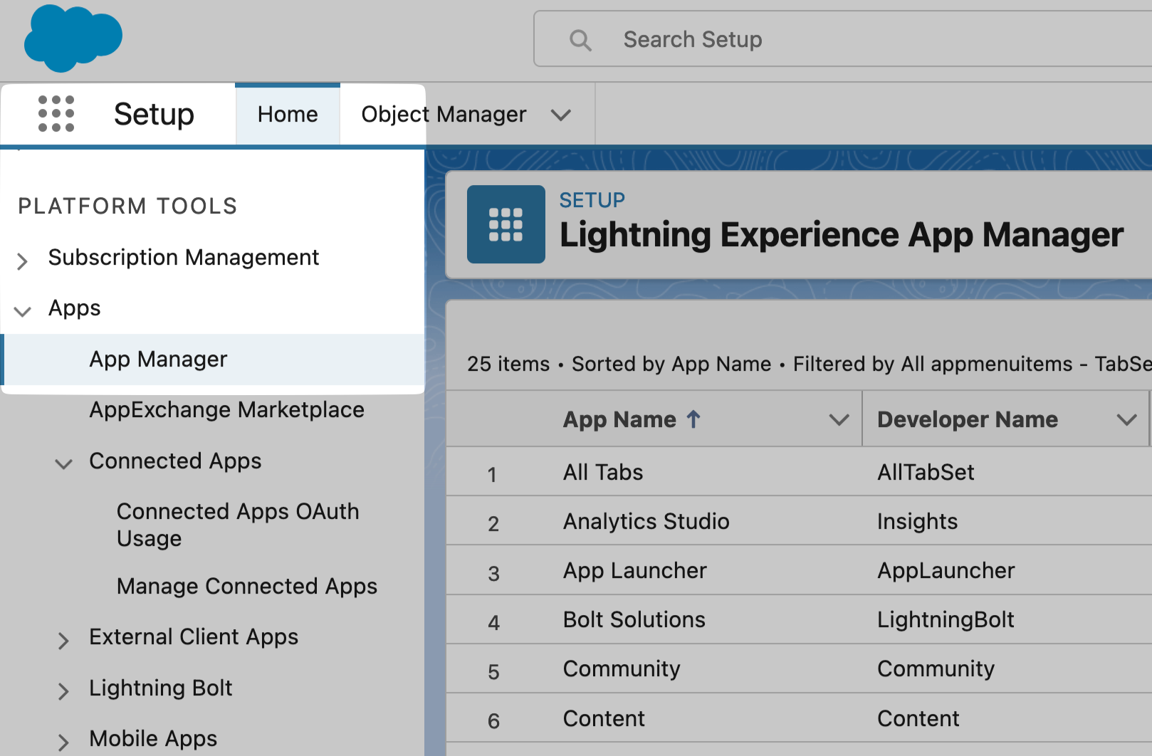- In the left sidebar, go to Platform tools > Apps > App Manager: