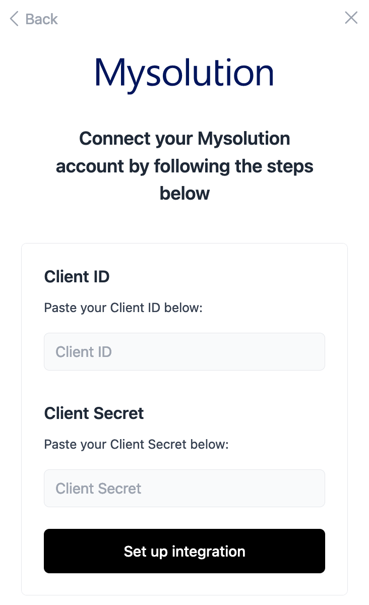 Copy the Consumer Key and Consumer Secret, and paste them into the connection flow under Client ID and Client Secret respectively: - You are then done and can press "Set up integration"