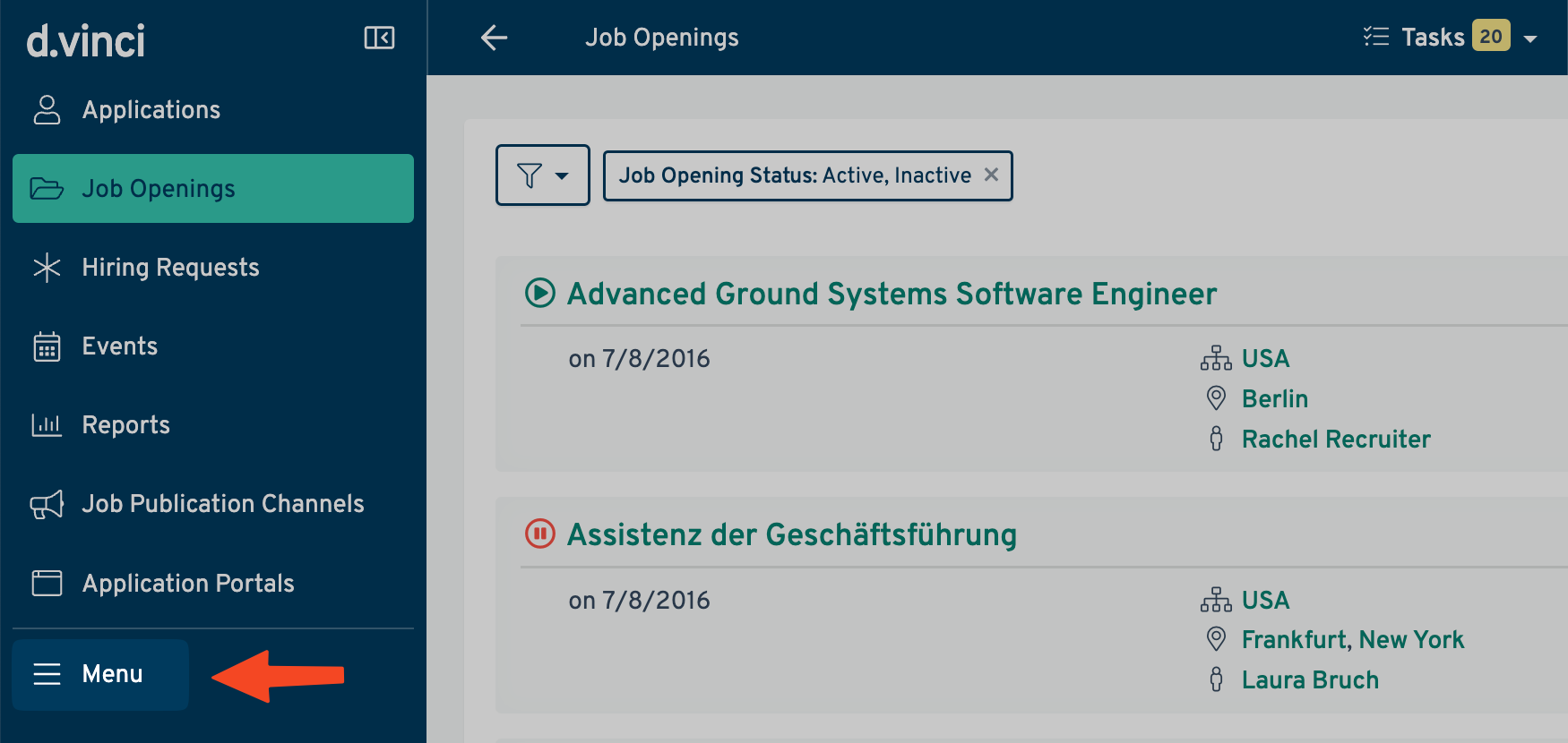 - Click the Menu (MenĂ¼ in German) button in the d.vinci sidebar: