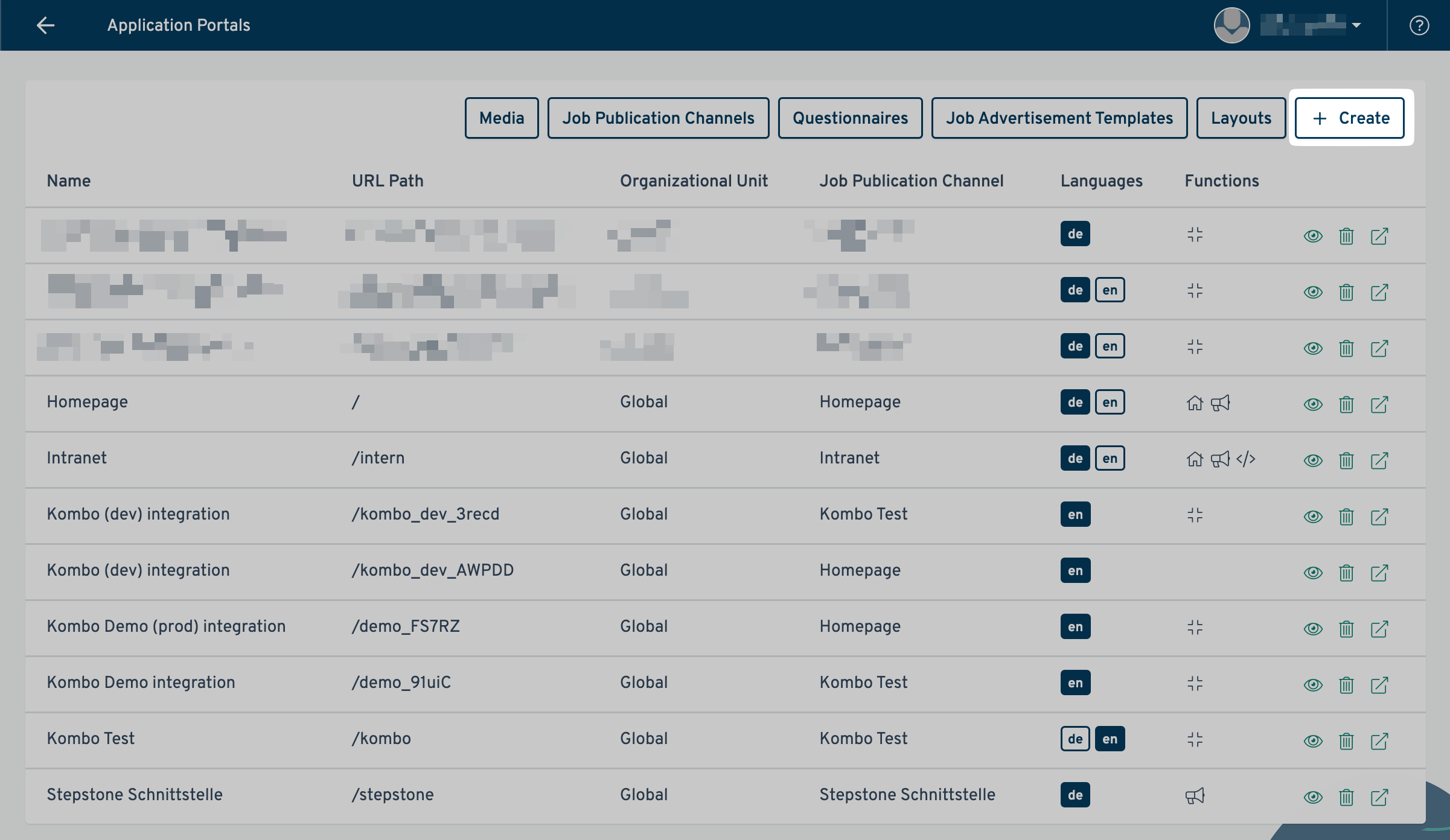 - On this page, click the Create (Anlegen in German) button in the top right: