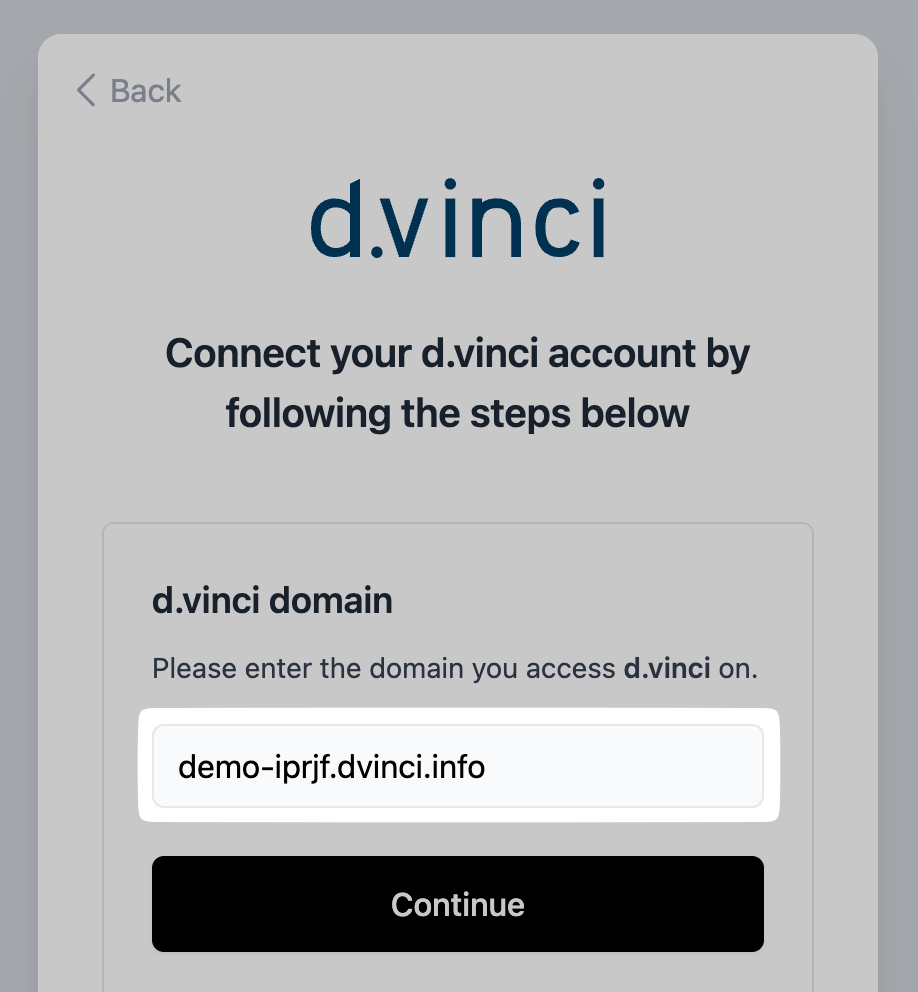 - Find out the domain your d.vinci instance is hosted on. You can see it in your browser's address bar when you're logged into d.vinci:
