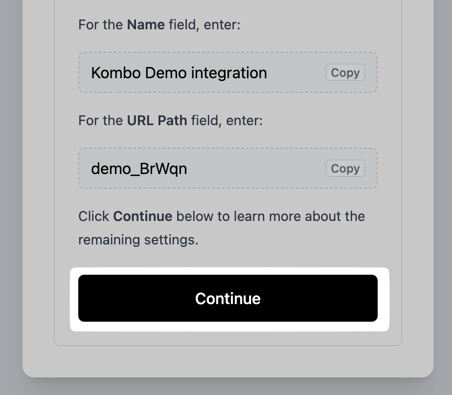 Click Continue in the connection flow to view the remaining settings: