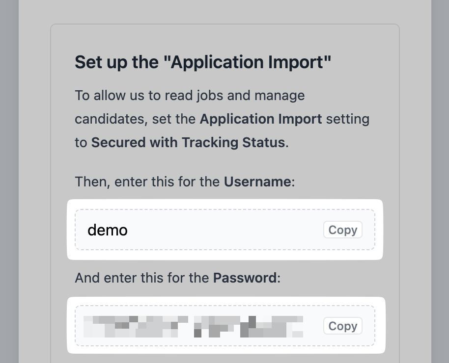- In the connection flow, you will now see credentials for setting up the Application Import.