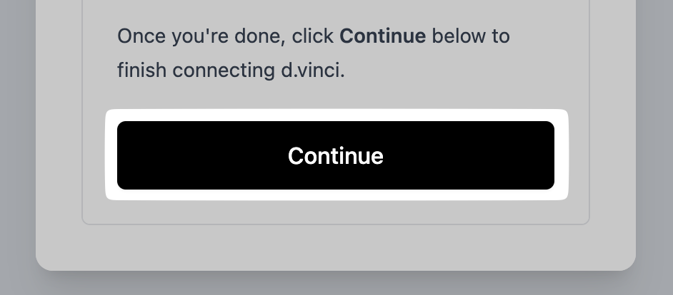 - Click "Continue" in the connection flow to go to the next step: