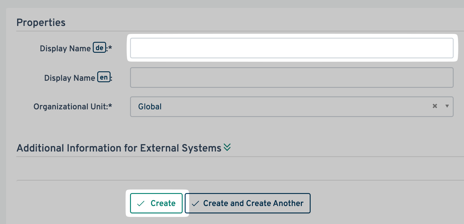 - Scroll to the bottom of the page and open the Additional Information for External Systems section