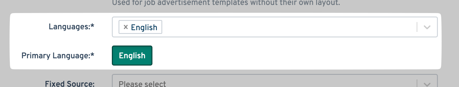 - For Languages, select the language you want us to sync your jobs in. Once selected, make sure you also select the language under Primary Language.