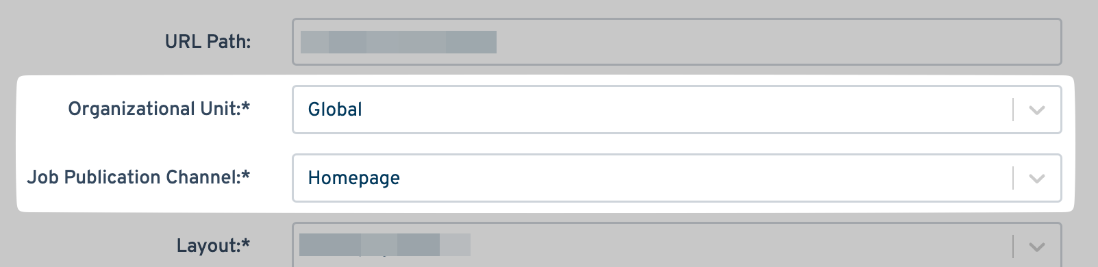 Configure the Organization Unit and Job Publication Channel based on which jobs you want us to sync.