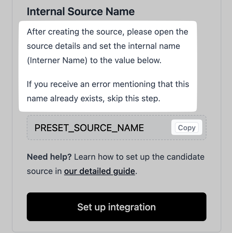 - Paste the value inside the connection flow, and click on Set up integration