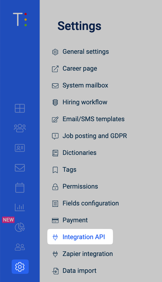 You know you are an Admin if you can see your company's Integration API settings as indicated below after clicking the cog in the bottom left corner.