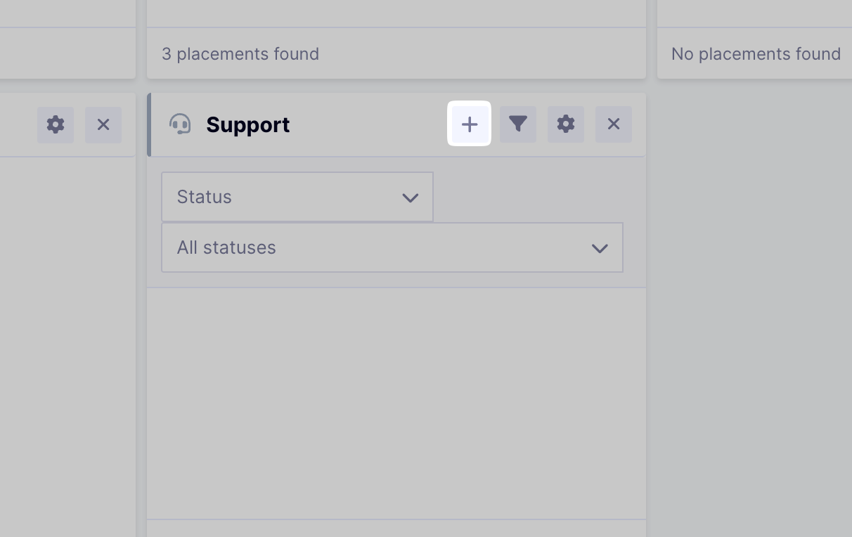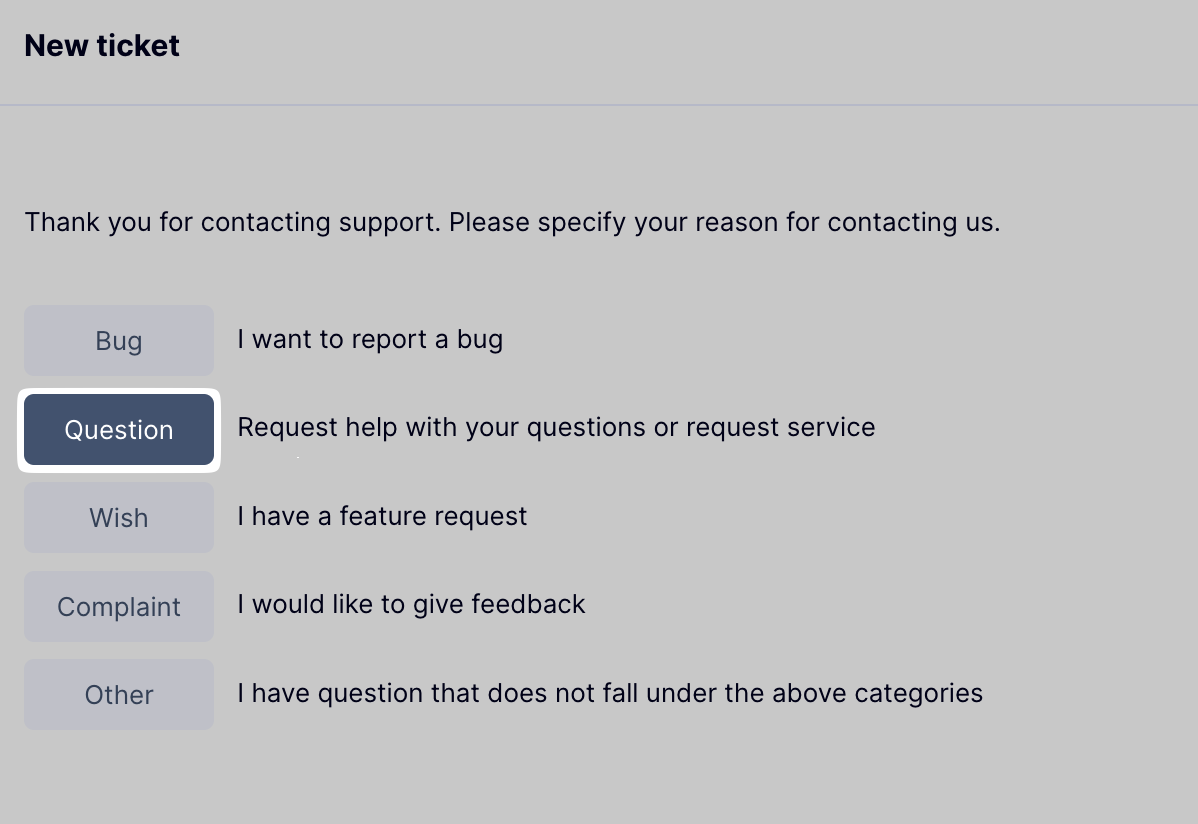 - Press the "+" icon in the support widget to create a new support ticket.