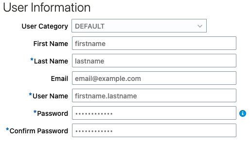 - Fill in the necessary information, saving the "User Name" and "Password" for later:
