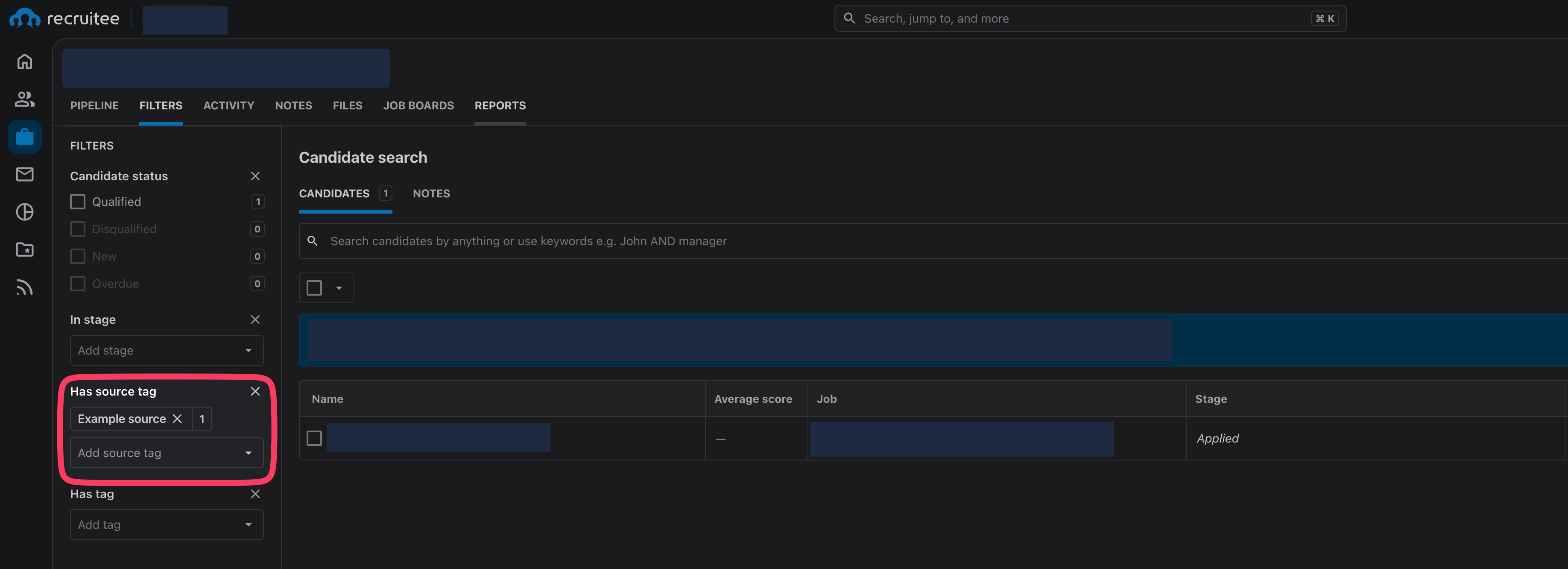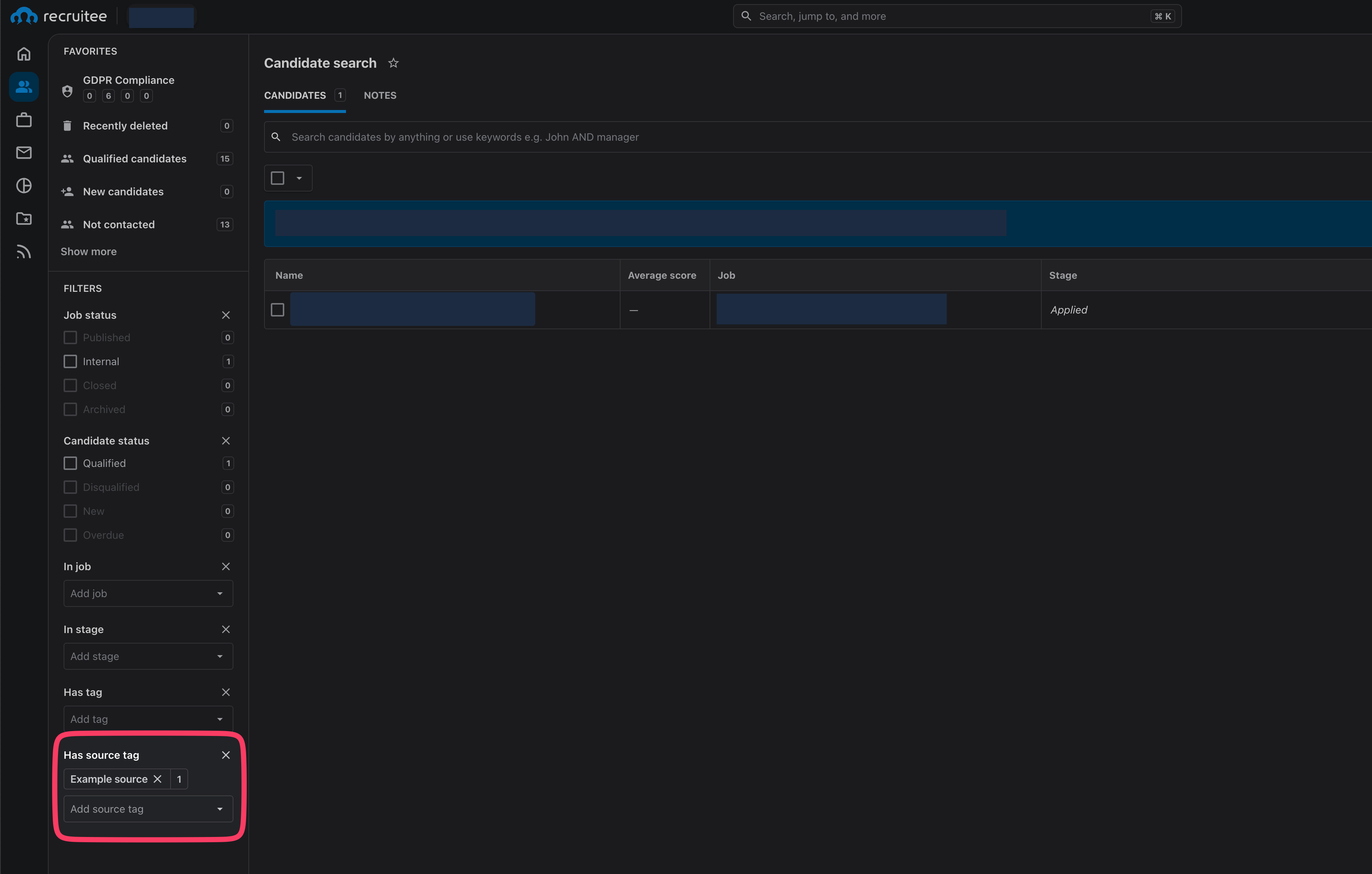 You can filter by source tags in the Candidates category:
