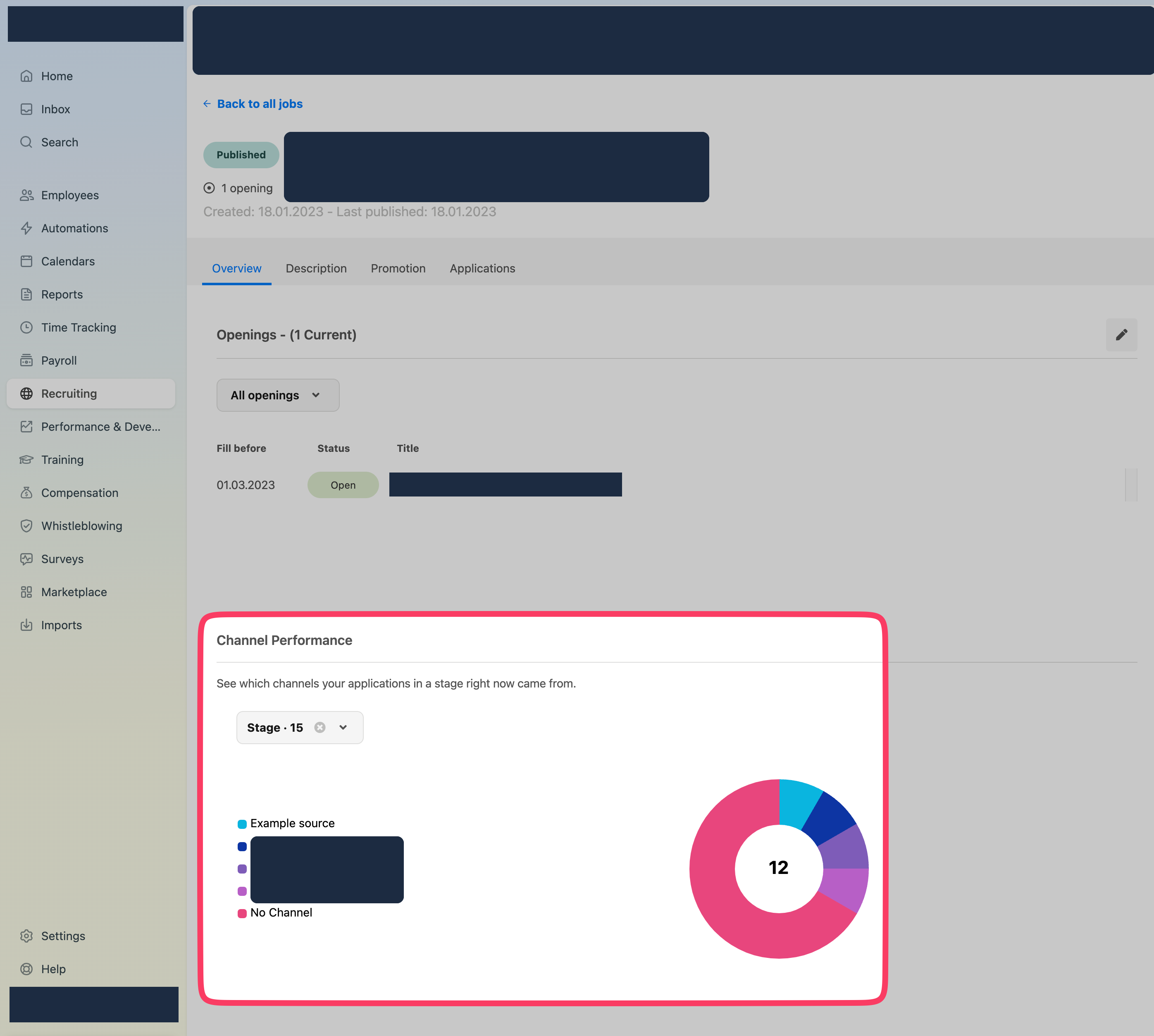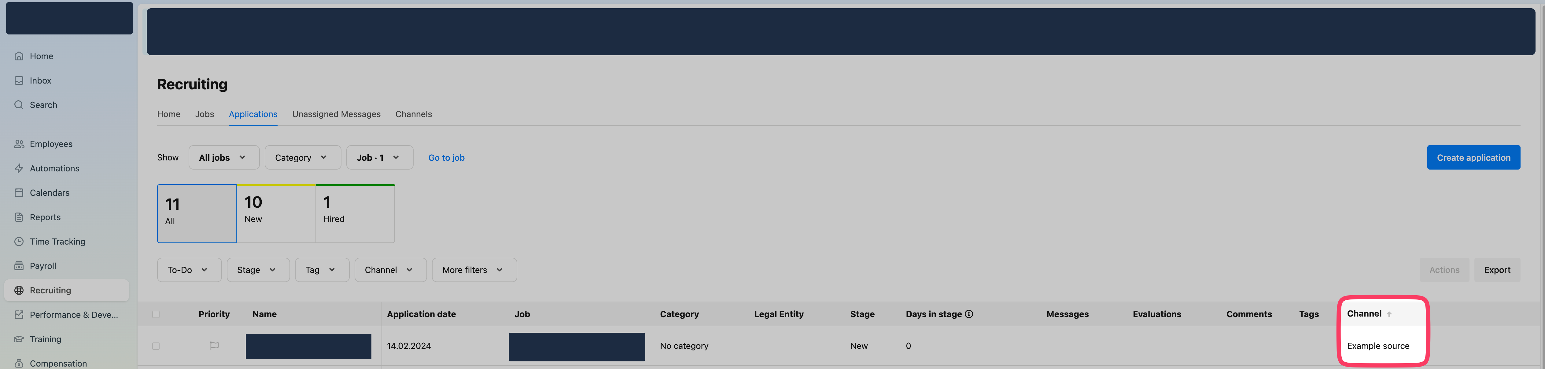 You can sort by channels in Recruiting > Applications