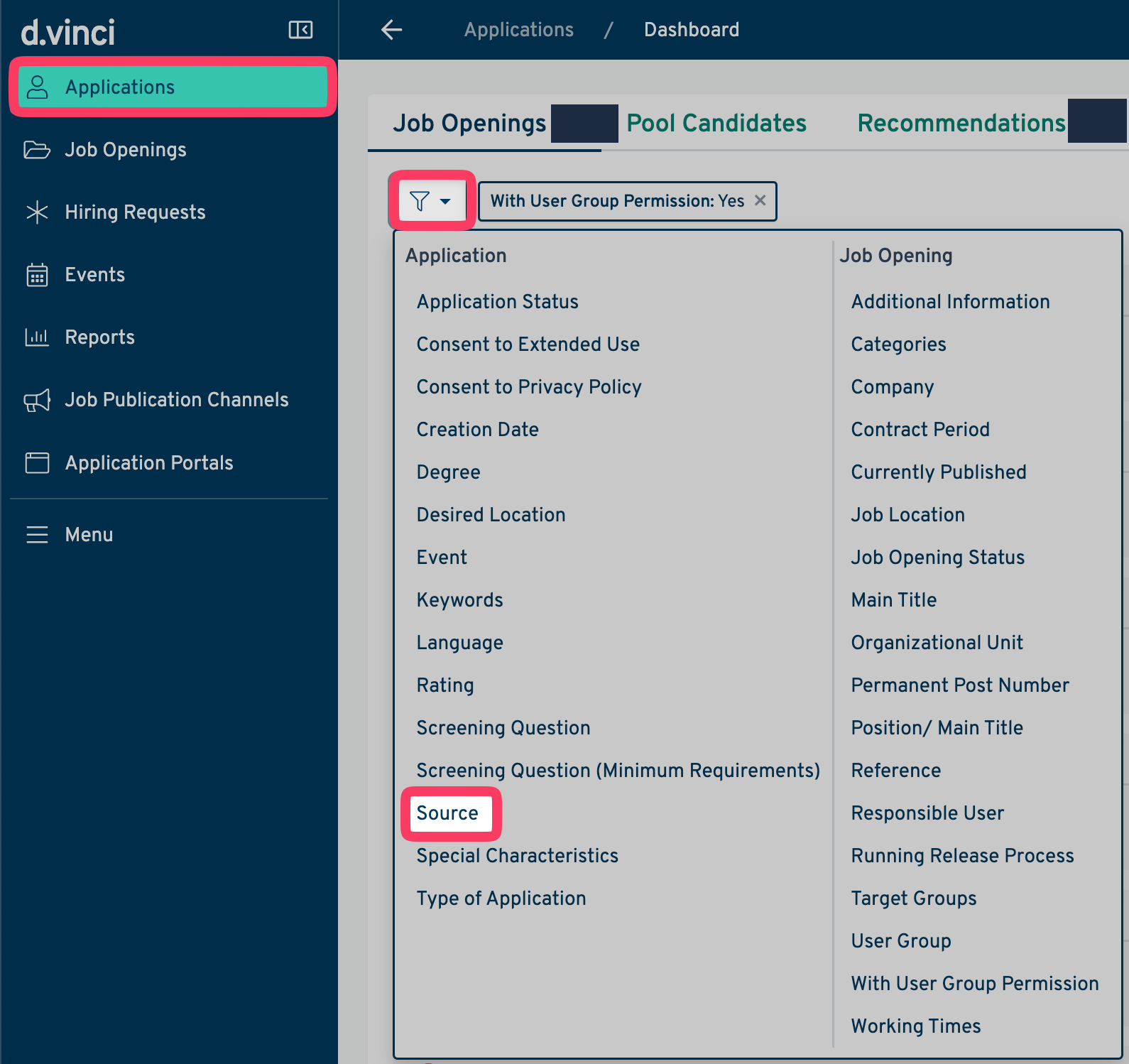 Click on "Applications" and then on the "filter icon". Select "Source"