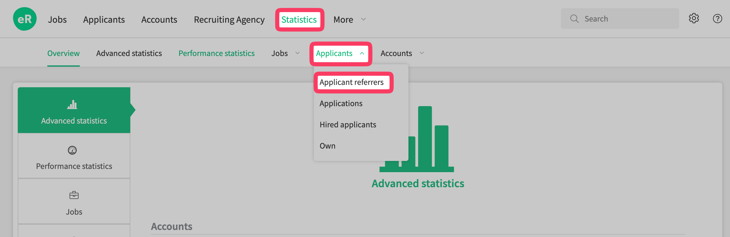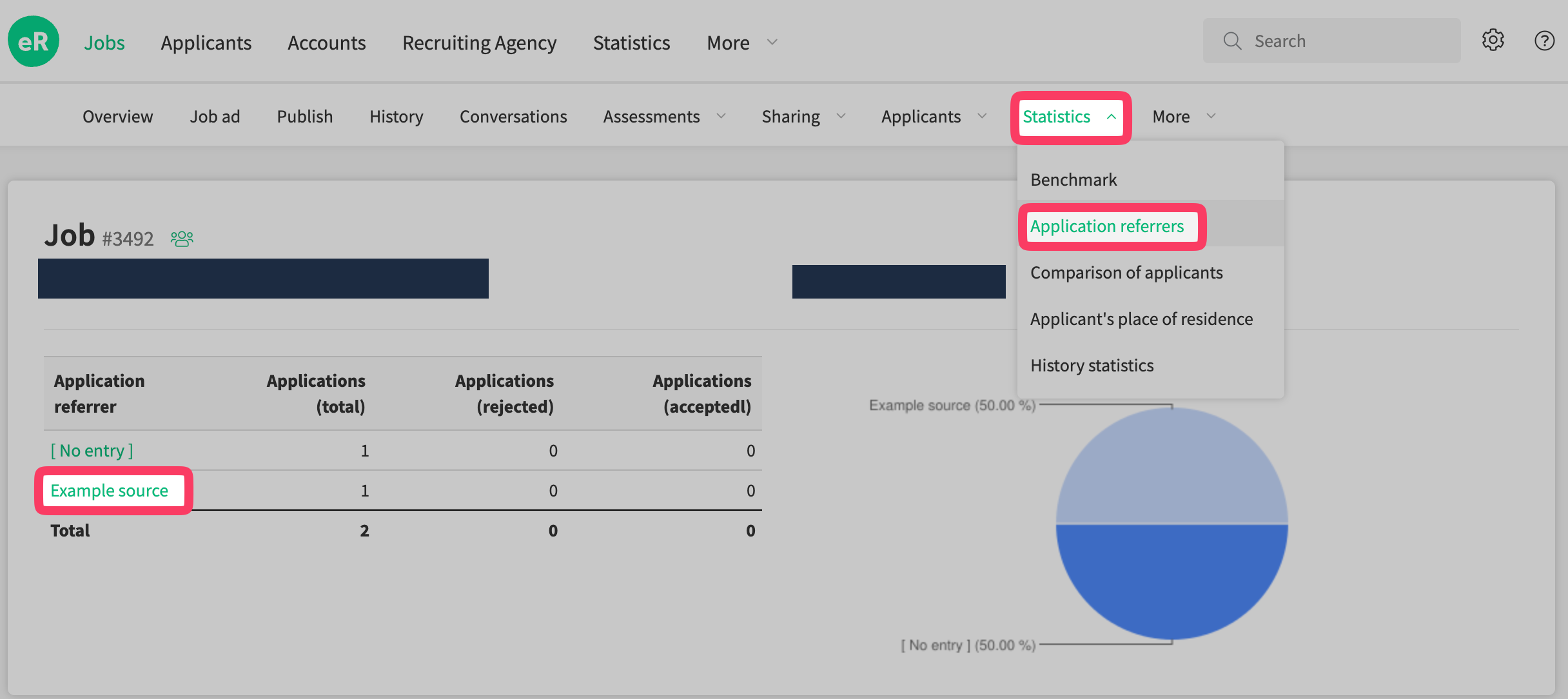 Additionally, you can get statistical information by clicking on Statistics > Applicants > Applicant referrers