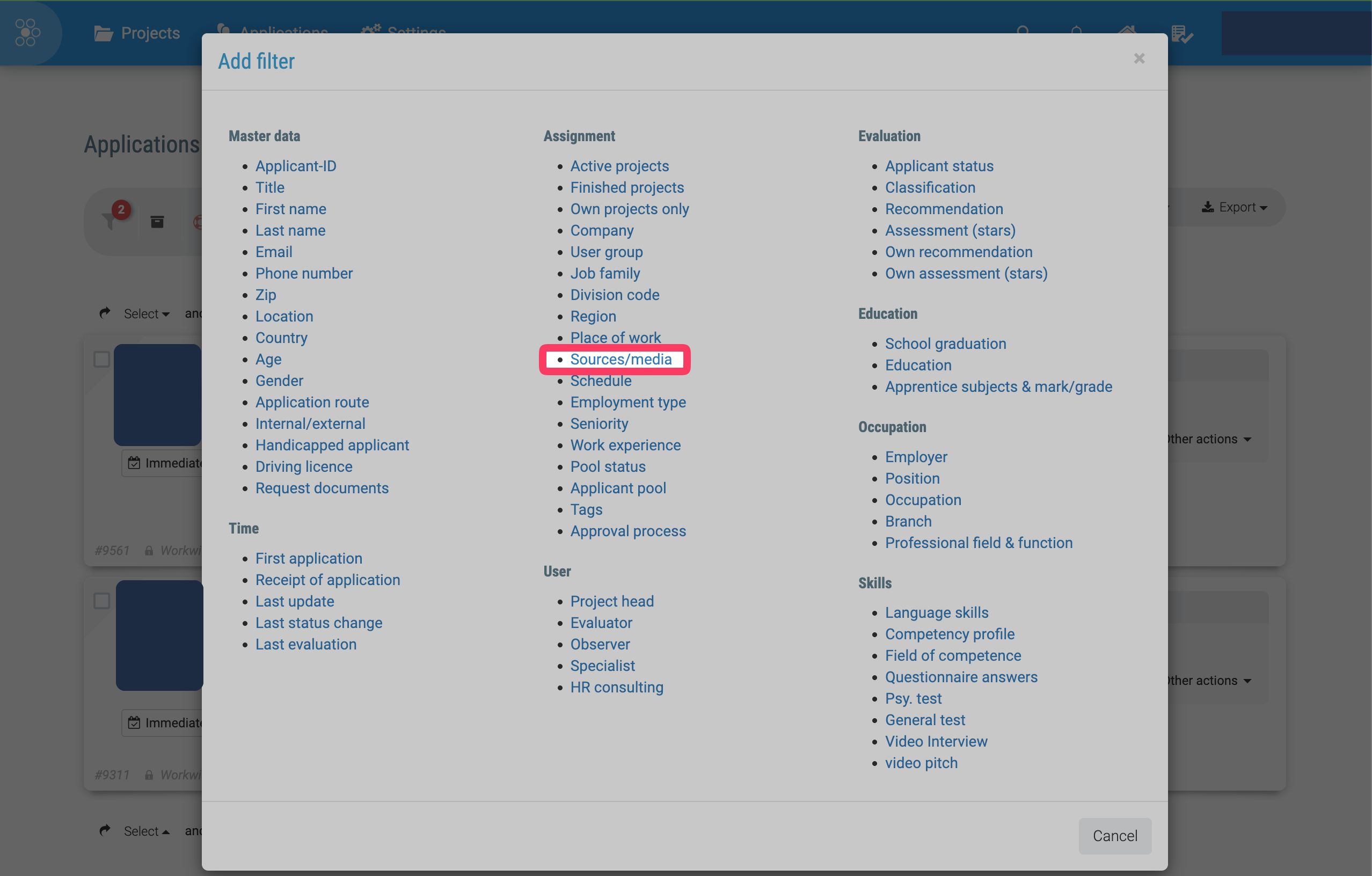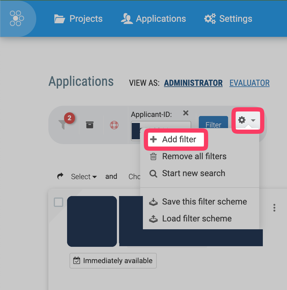 Additionally, you can filter all candidates by clicking the "gear icon" > "+ Add filter"