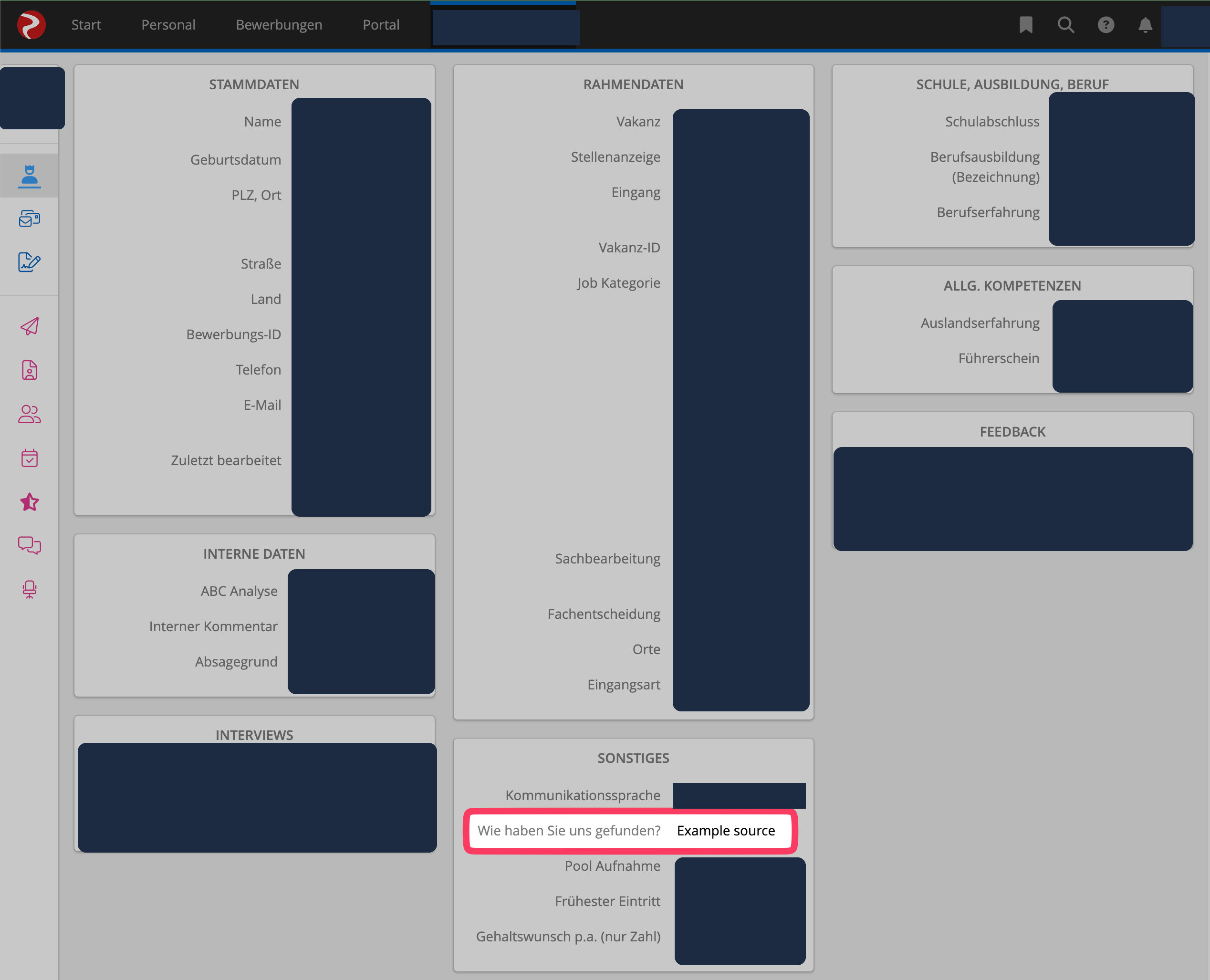 Rexx: How to view a candidates source February 16, 2024 14:13 Updated View source: The source is displayed on an individual candidate under "Sonstiges" > "Wie haben Sie uns gefunden"