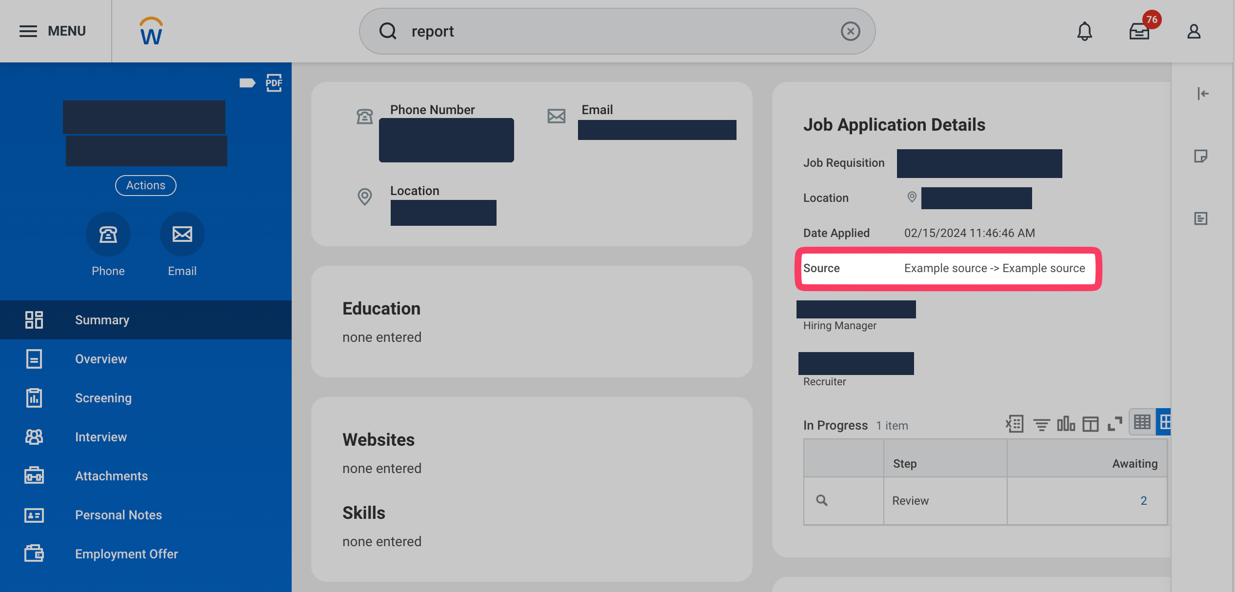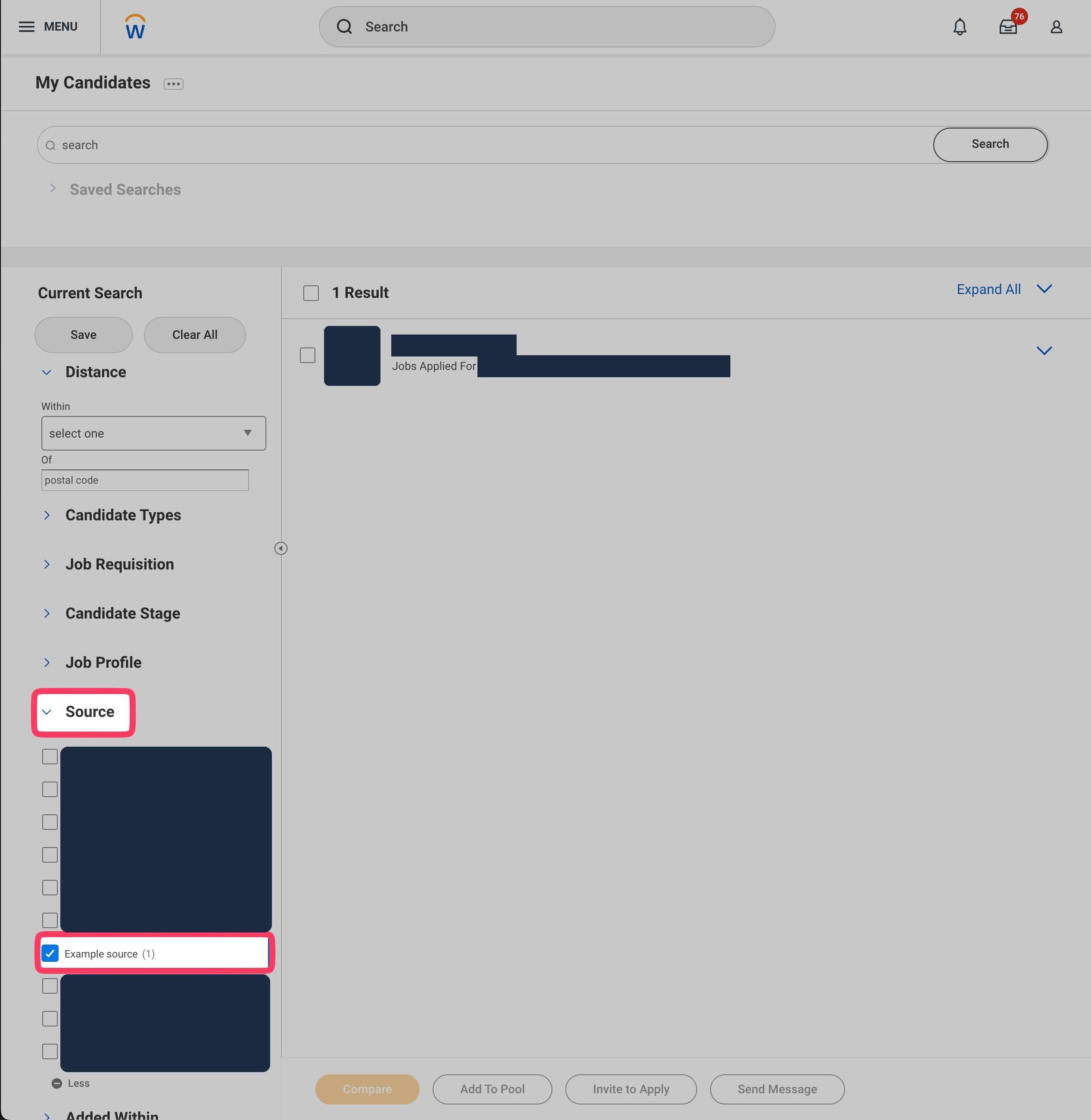 Additionally, the source is visible on each candidates profile under the category "Job Application Details" > "Source"
