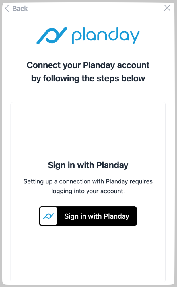 - Please ensure that the person setting up the connection is the Administrator in the Planday instance, otherwise the connection will not work.