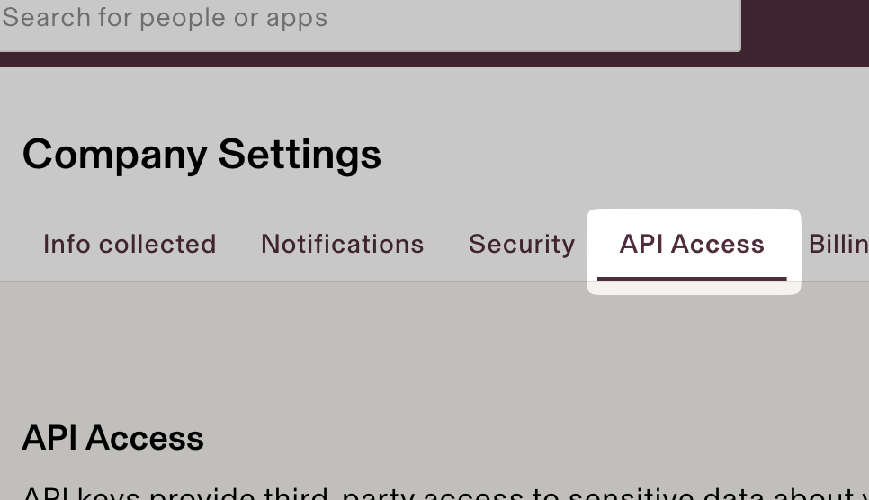 - Click on the API Access tab.