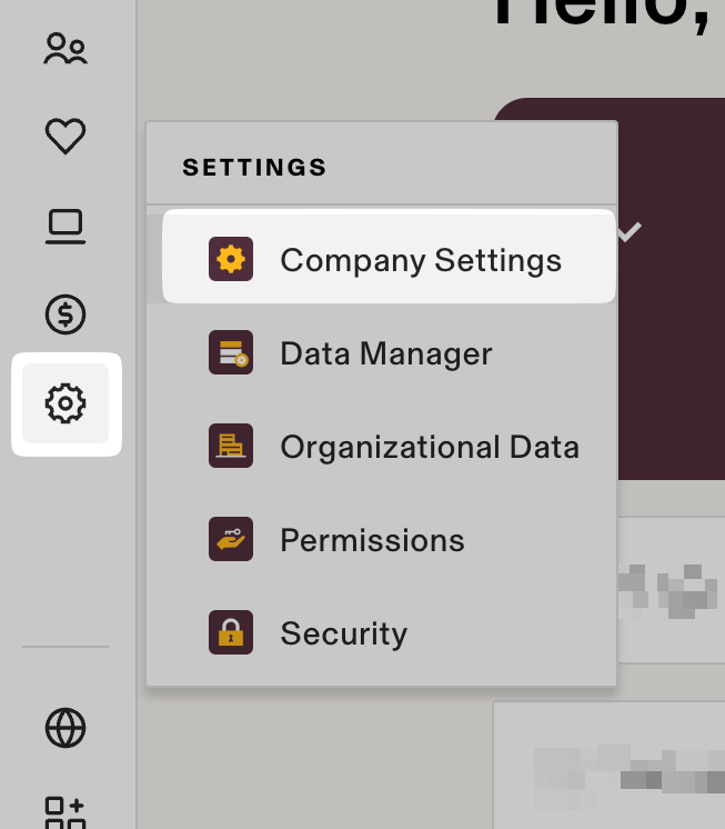 - In the sidebar, click on the cog icon to open the settings, and click on Company Settings.