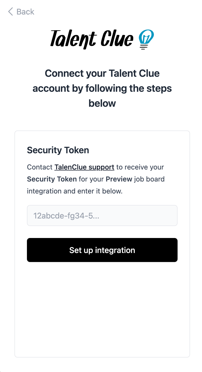 For an integration with our Talent Clue instance, we'd like to ask you to provide us with the security token for
