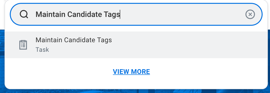 1. Log into your Workday instance, and search for "Maintain Candidate Tags" and click the search entry:
