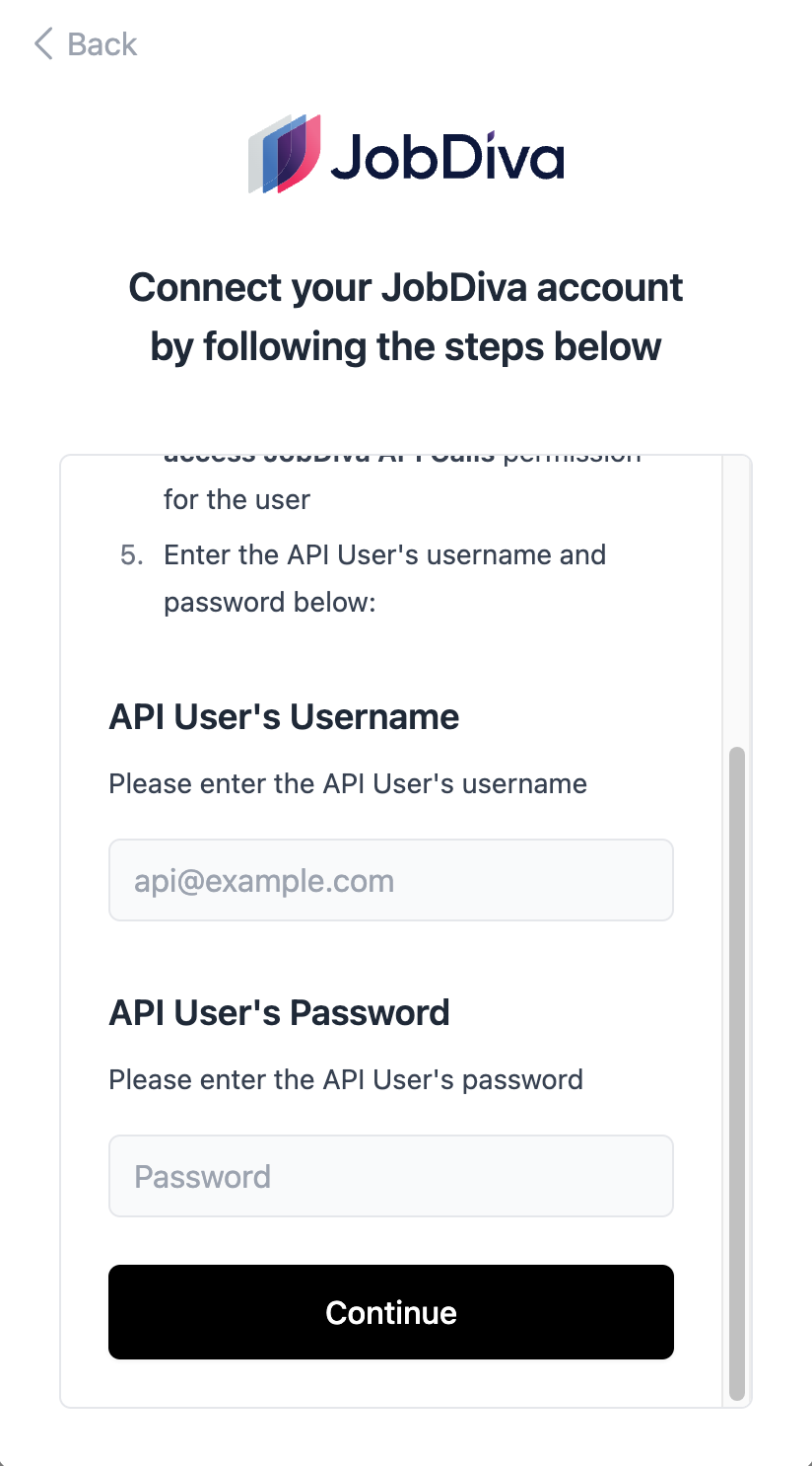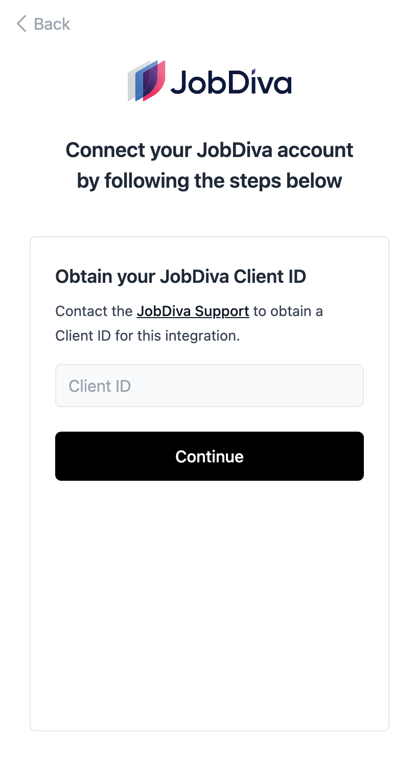 - Please reach out to JobDiva Support and request a Client ID for this integration