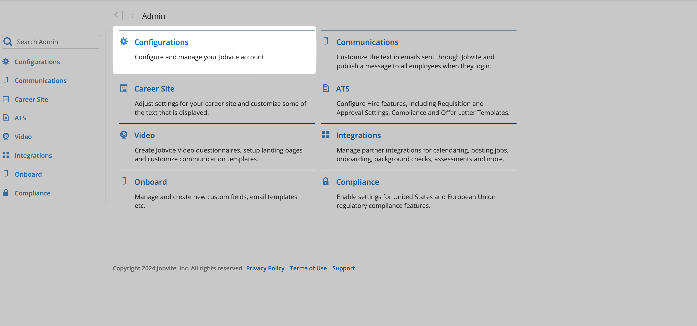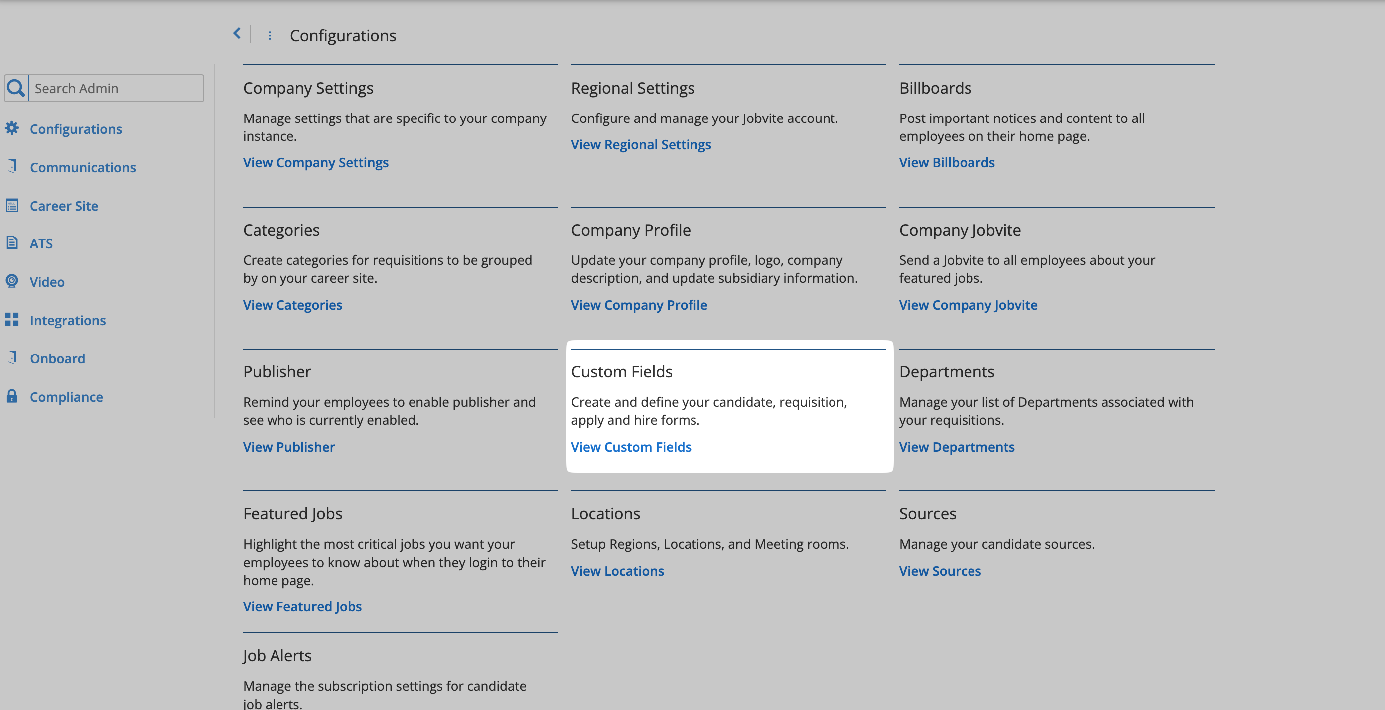 To set up a custom field in Jobvite, you require access to the Admin panel. To test that you have the required permissions, follow these steps: