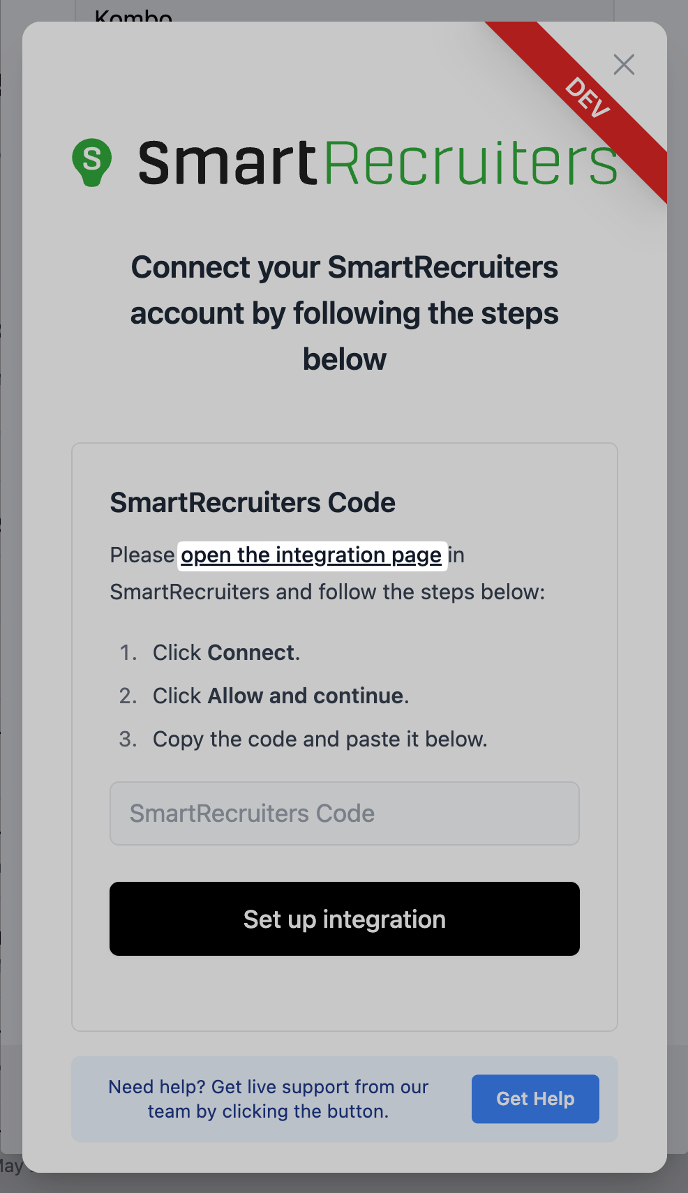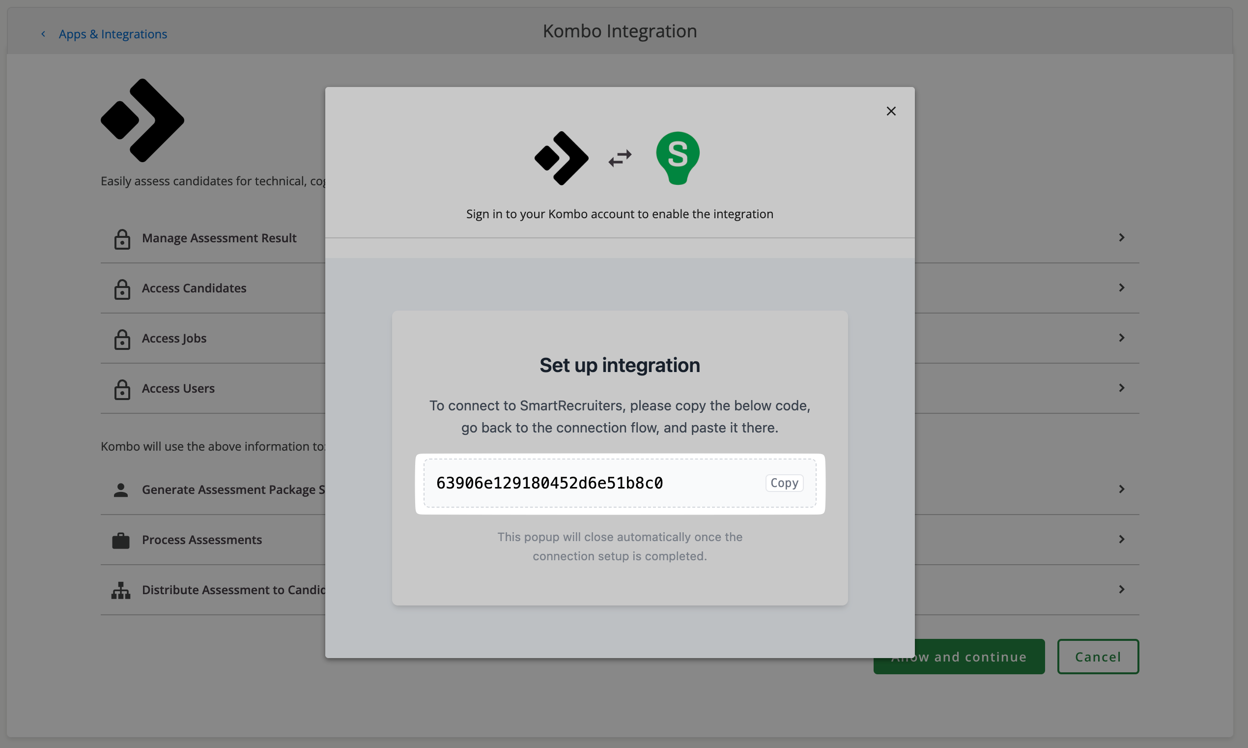 - Copy the code from the pop-up
