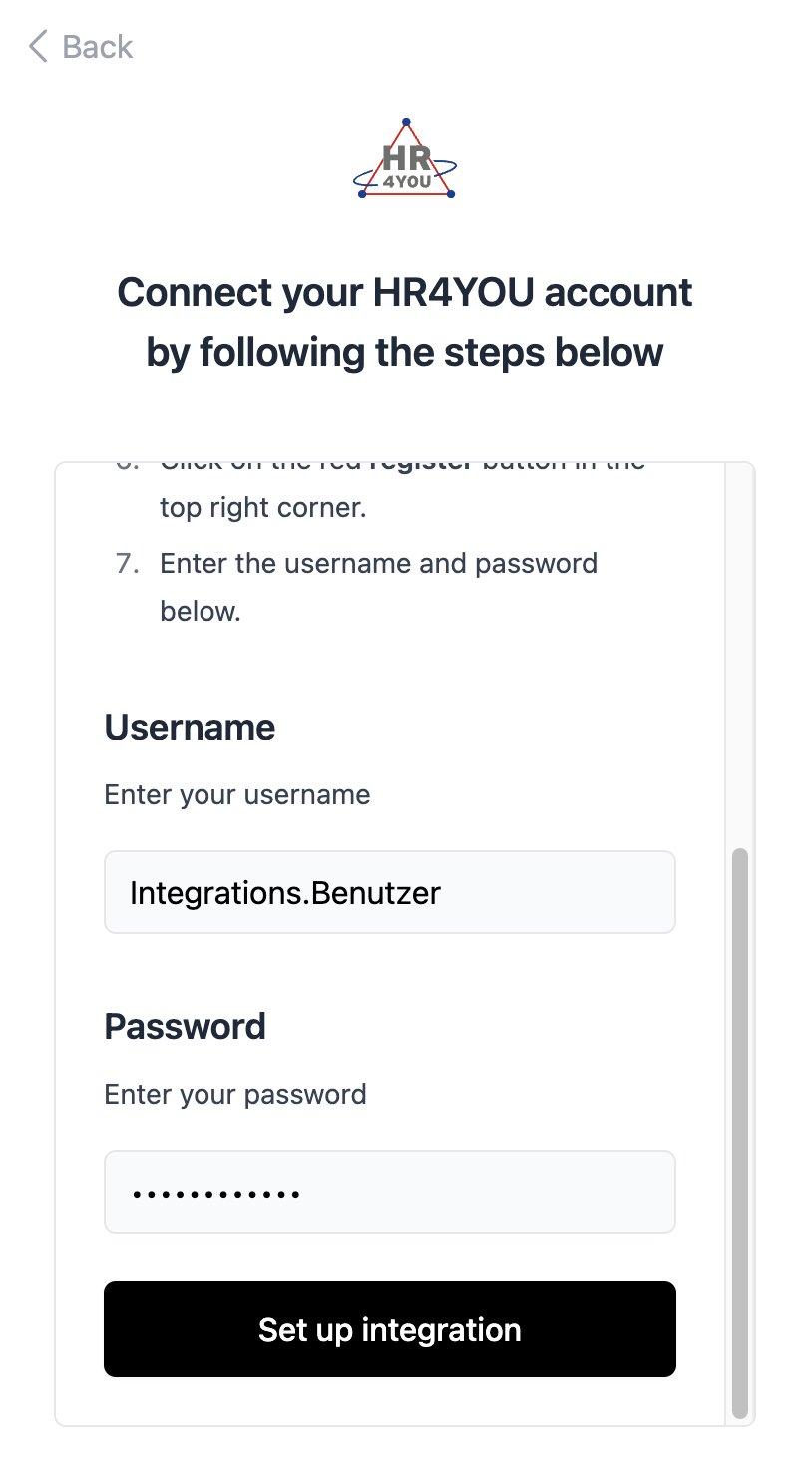 Diese Integration kann nur von ihrem HR4YOU Administrator erstellt werden. Wir empfehlen, die Verbindung wie folgt anzugehen: