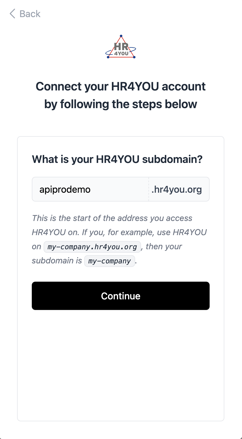 - Geben Sie ihre HR4YOU Subdomain ein.