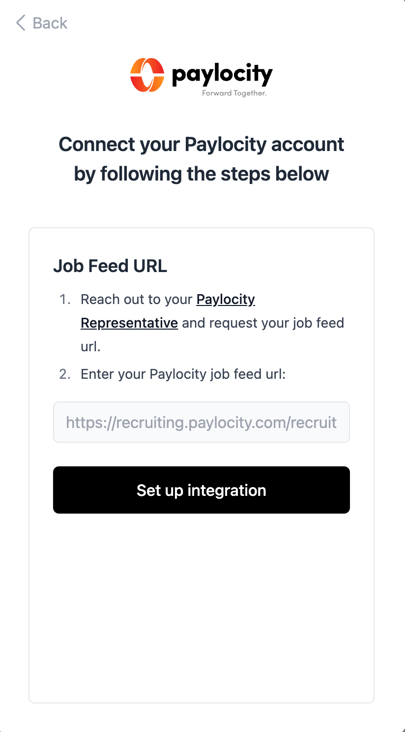 We would like to set up an integration with XYZ to automate reading jobs within Paylocity. We were told to reach out to you in order to access our job feed URL.