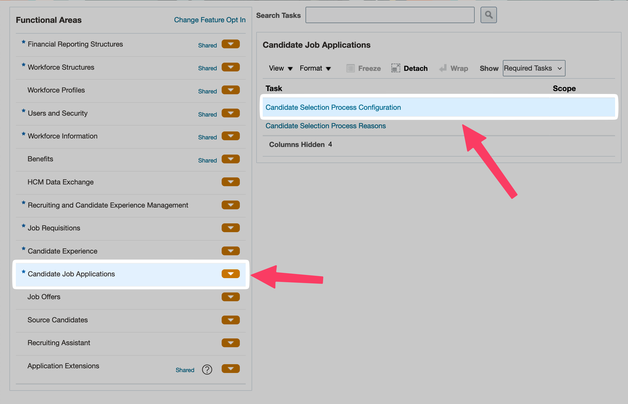 - Select the "Candidate Job Applications" tab under "Functional Areas" and then click on the "Candidate Selection Process Configuration" task: