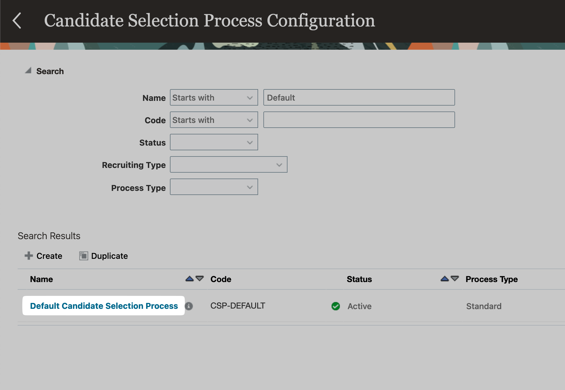 Note: In this example, we are selecting "Default Candidate Selection Process"