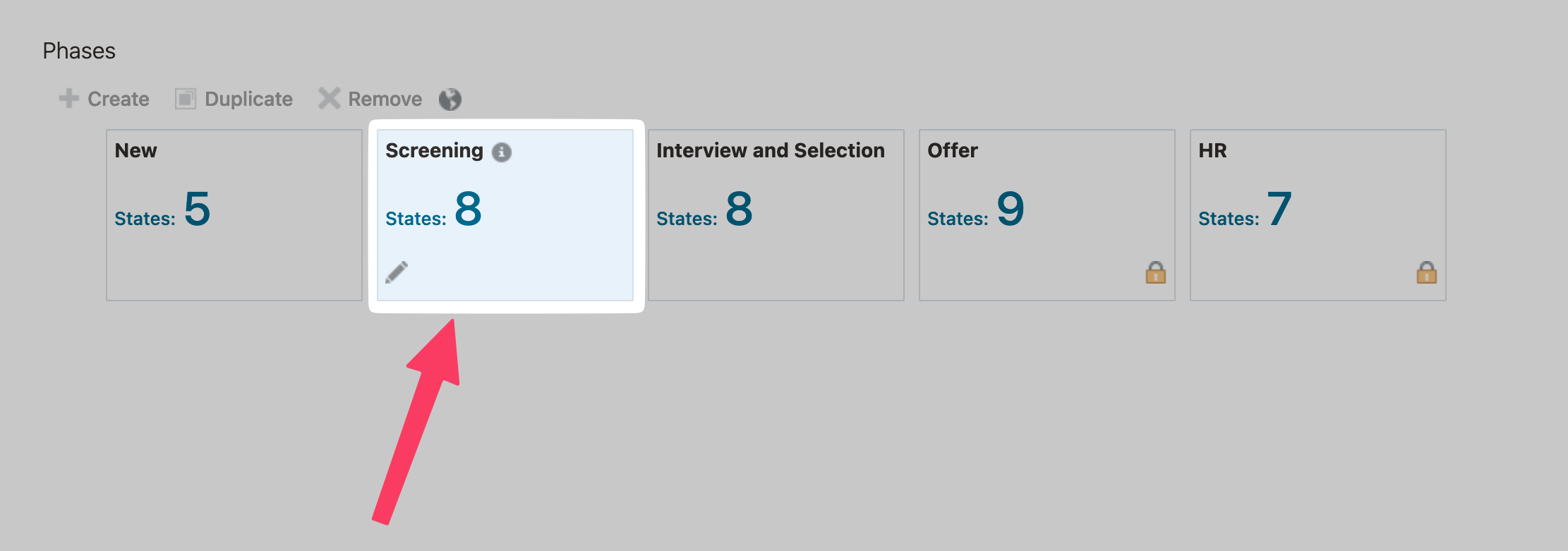 Note: In this example, we are selecting the phase "Screening"