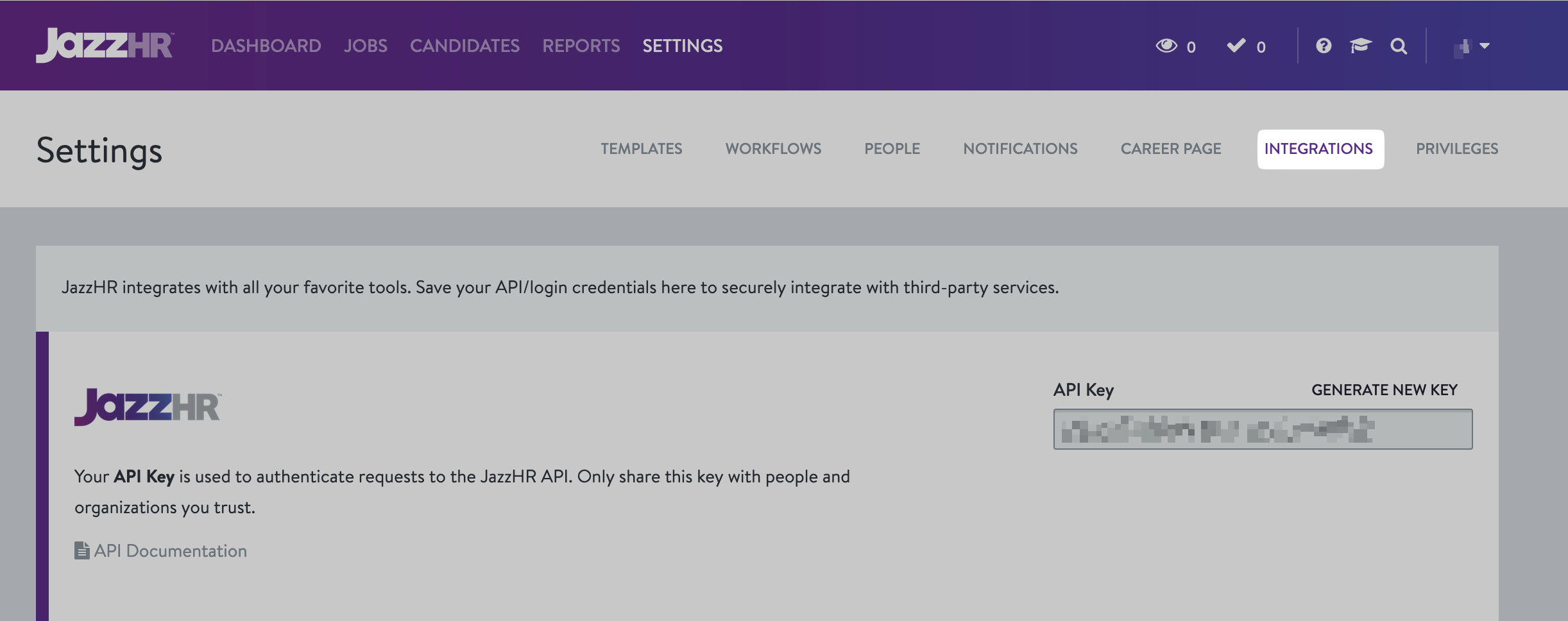 - Your account must have at least the "Recruiting Administrator" role in your company's JazzHR Instance.