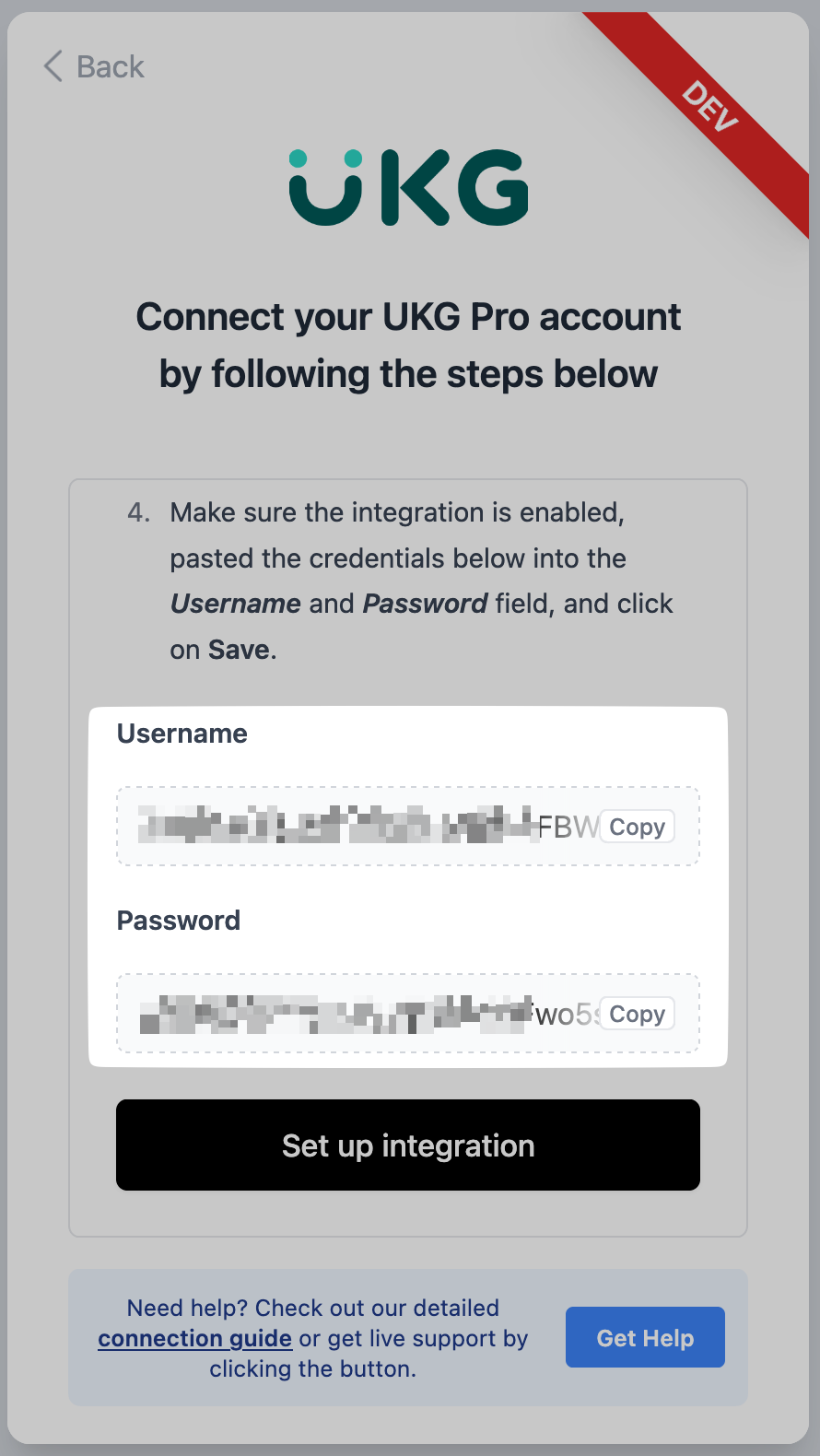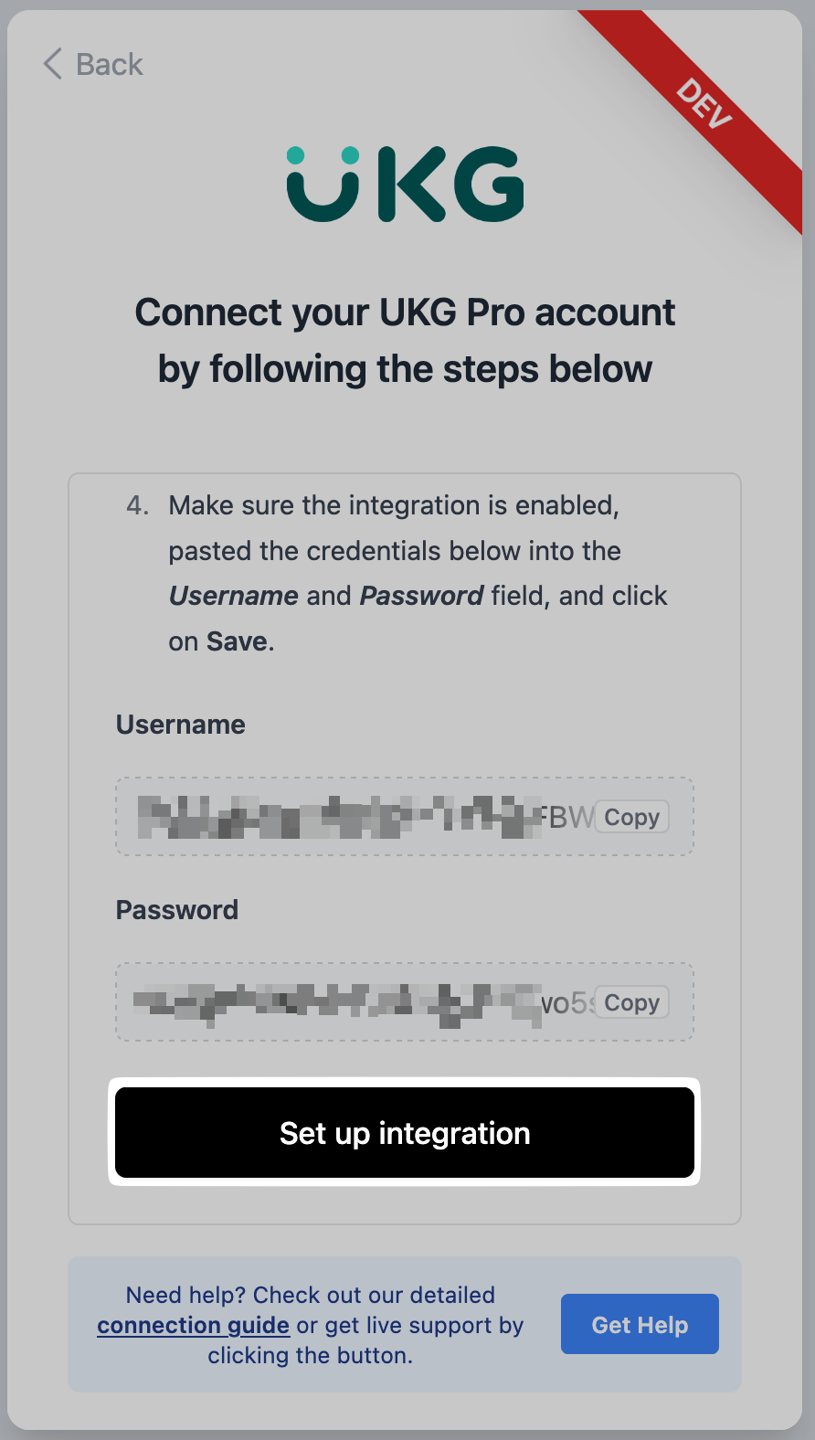 Enter your Client ID and Client Secret into the connection flow after you have received them from UKG: