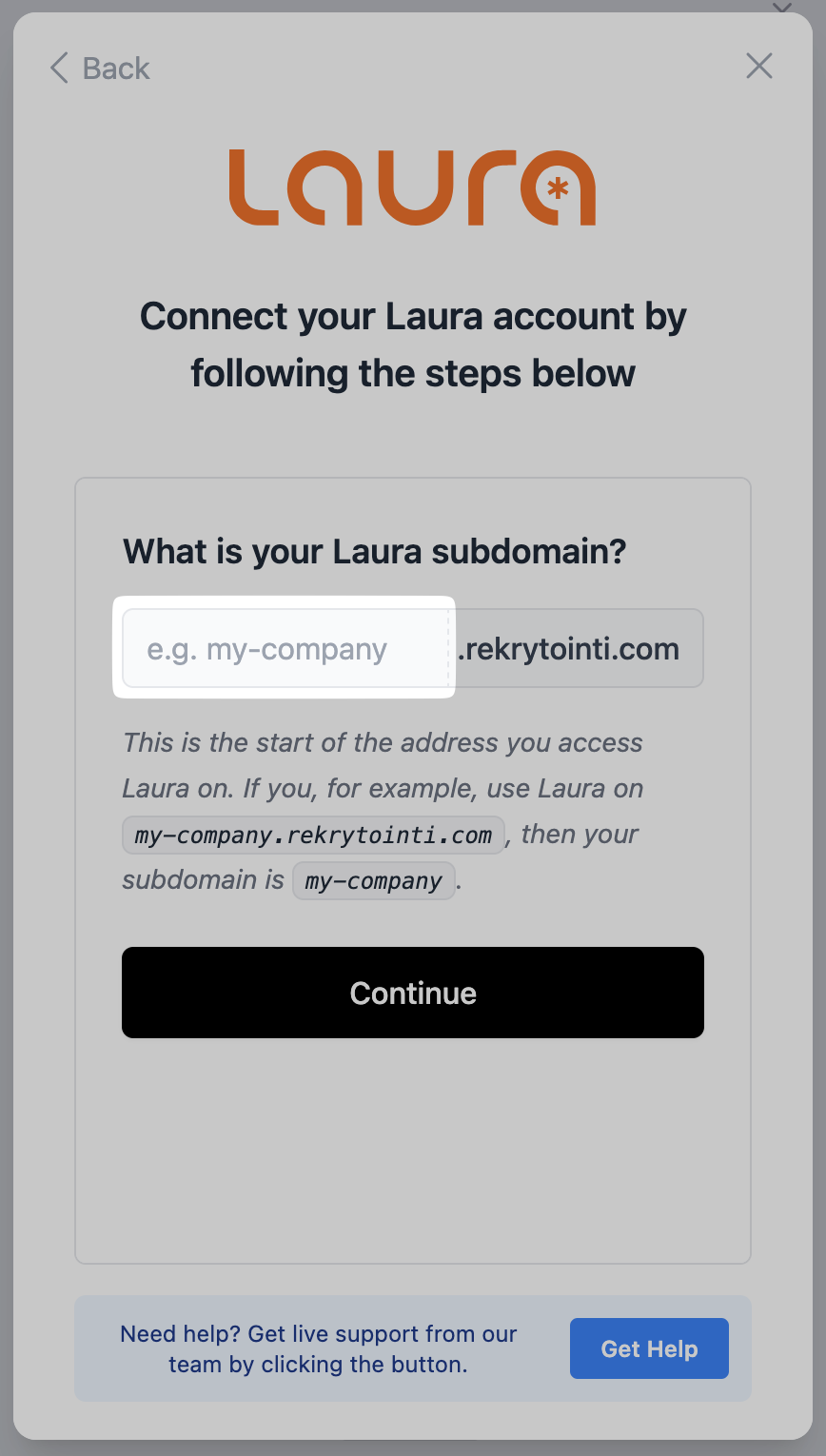 2. Paste your subdomain into the setup flow