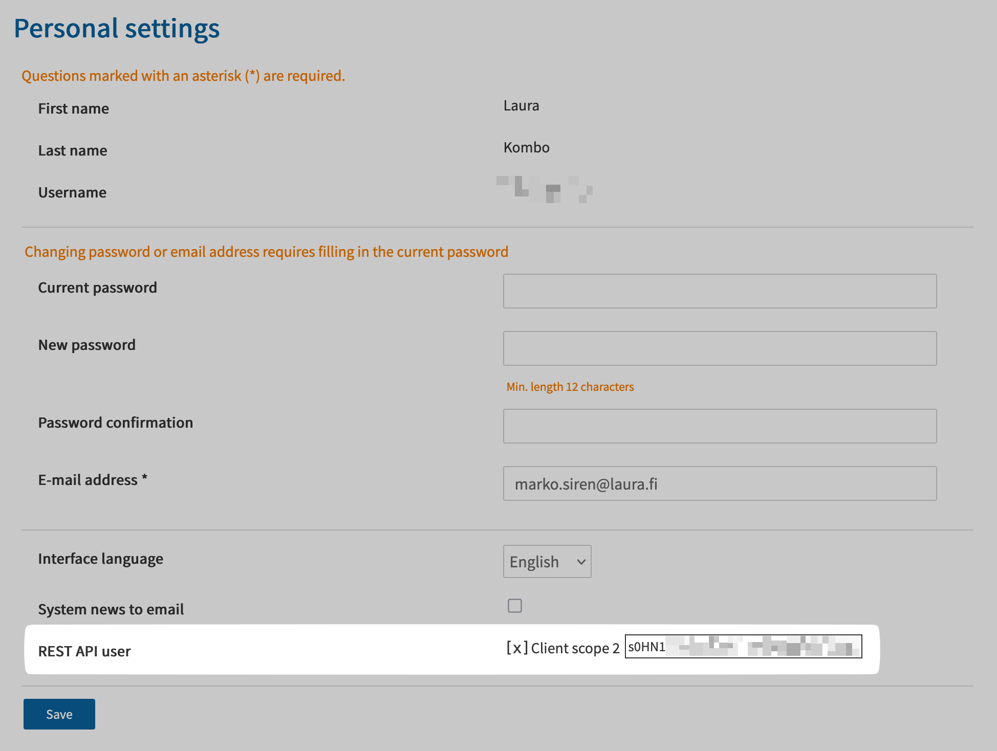 3. Log into your Laura dashboard using the newly provided account and go to Personal settings
