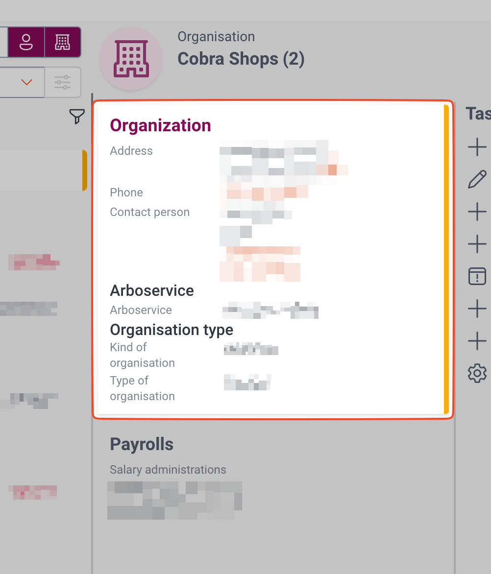 - Click anywhere on the organizations info panel