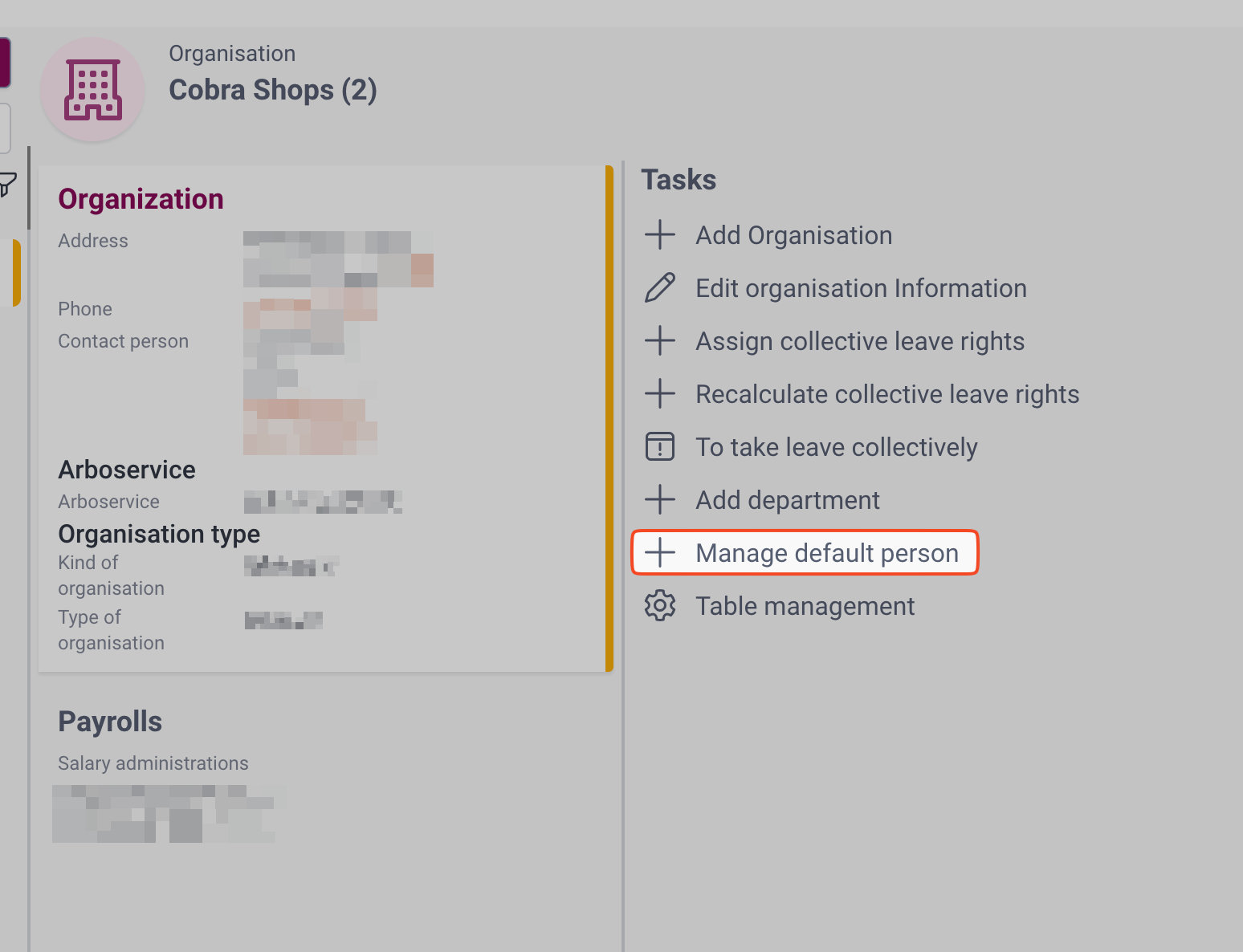 - Click on Manage default person on the right-hand action panel