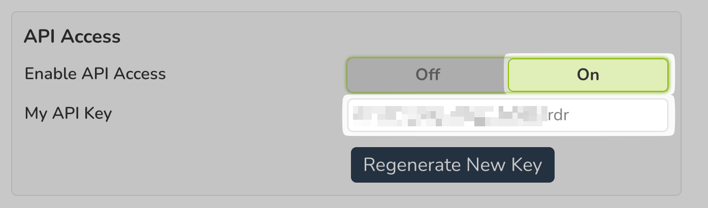 - Make sure the "Enable API Access" is set as "On", and copy the API key: