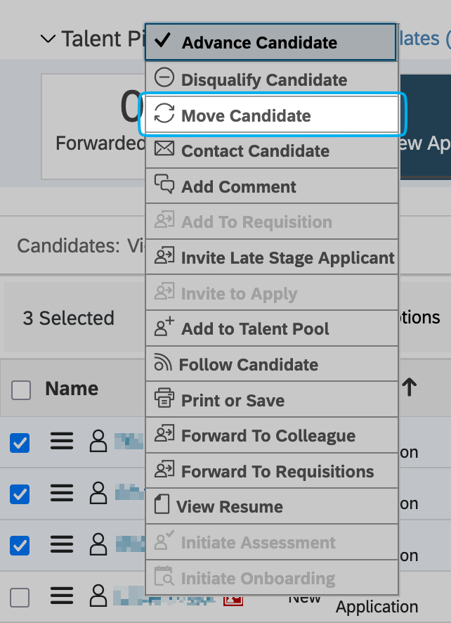 - Click on "Move Candidate" from the dropdown: